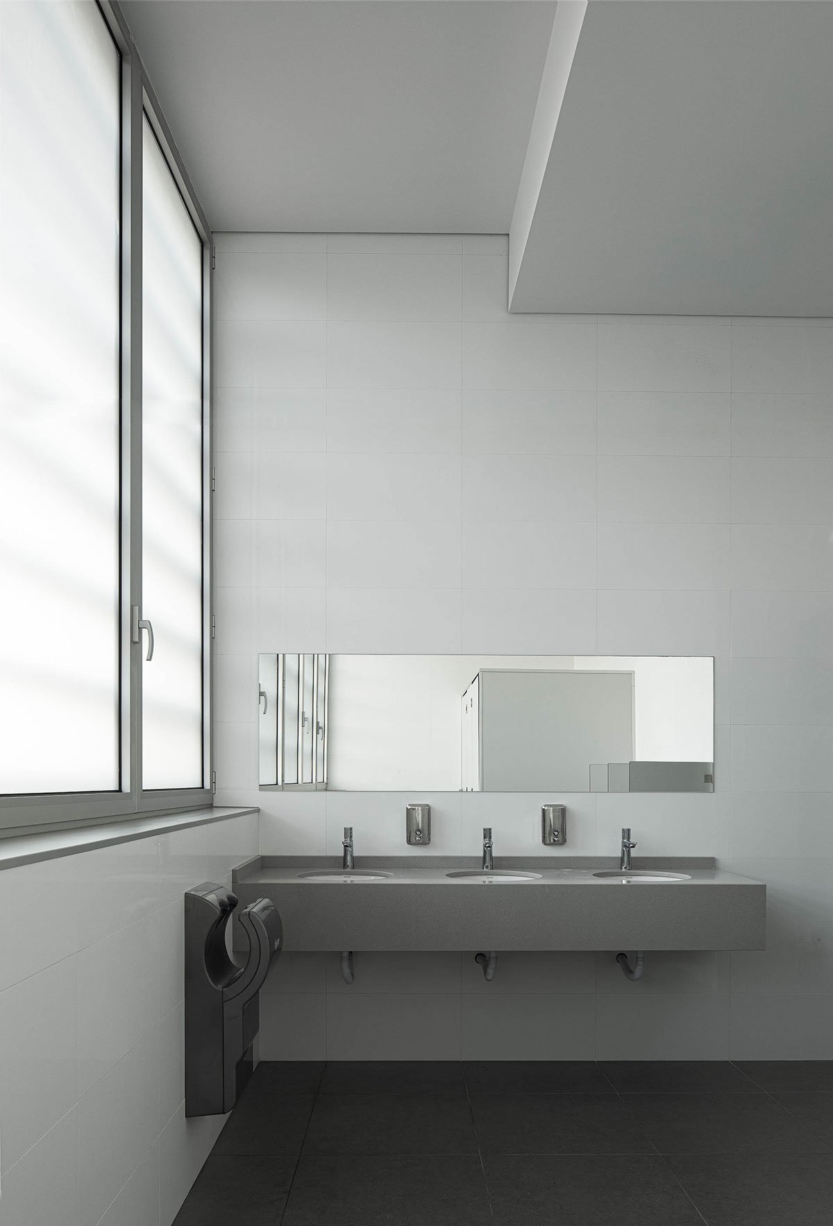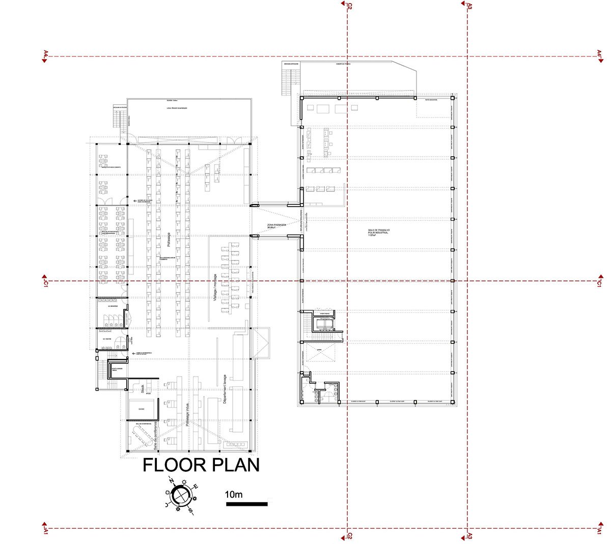 The existing basement floor is dedicated exclusively to production aid equipment that will not undergo any changes. The current ground floor internally has an entrance area with a hall, reception area and respective support spaces: meeting room and sanitary facilities for clients.