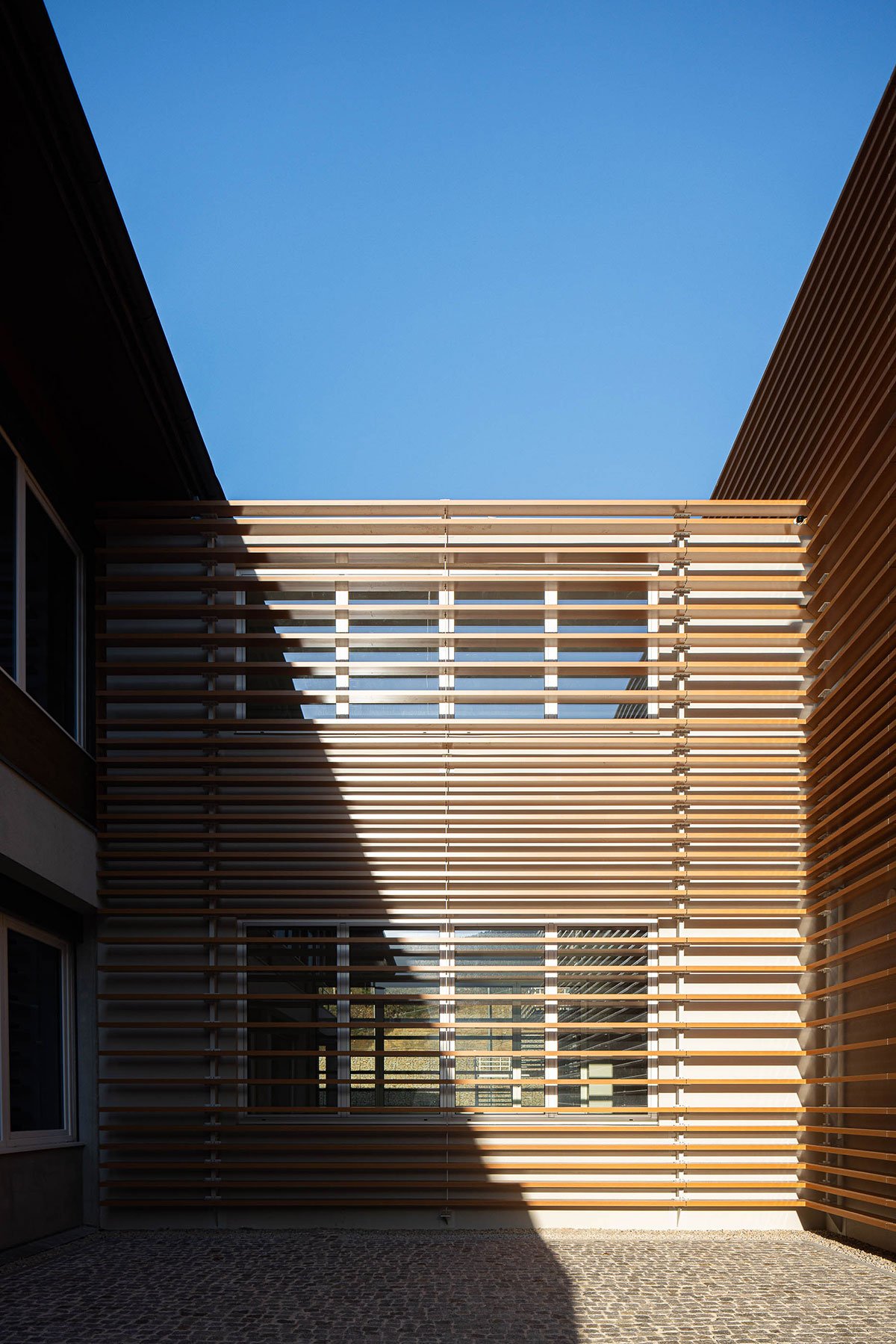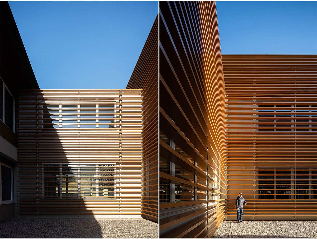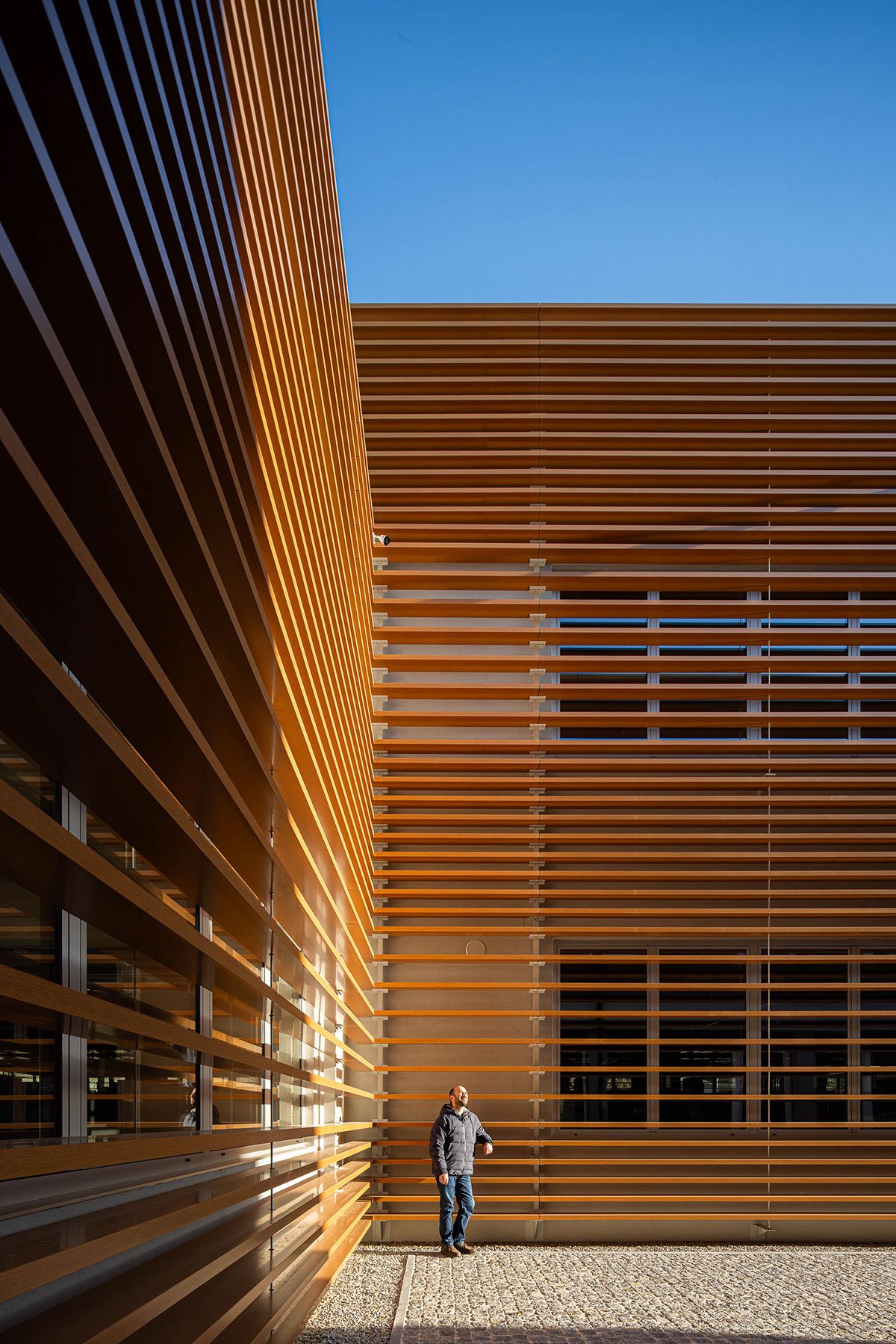 With the image of the new building, the aim is to create a bolder and more distinct architectural approach between both buildings, yet friendly. This solution, with a more audacious character, with thermal concerns, takes aesthetic advantage of the blades that sometimes create moments of shadow and sometimes create moments of more tenuous and controlled light.