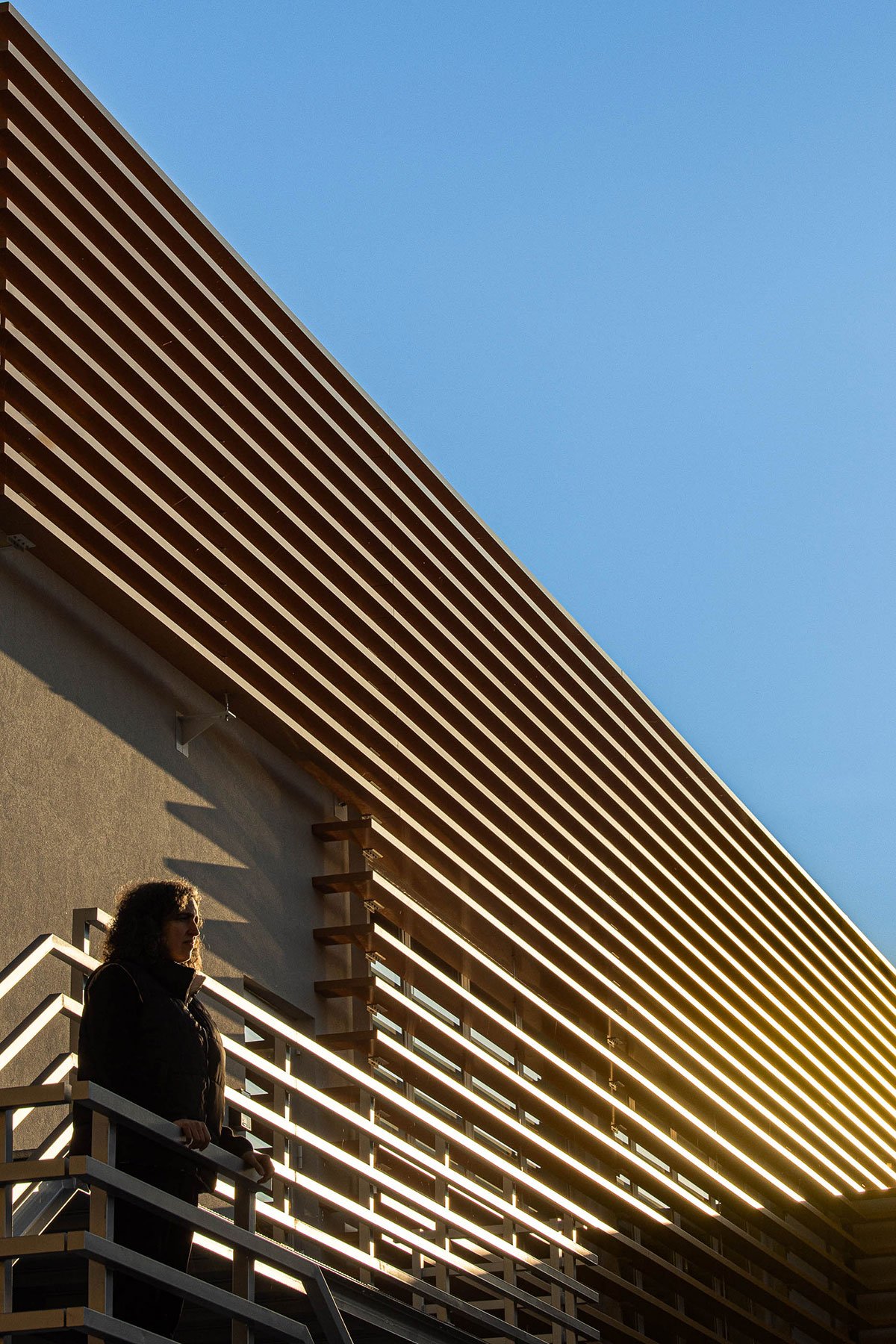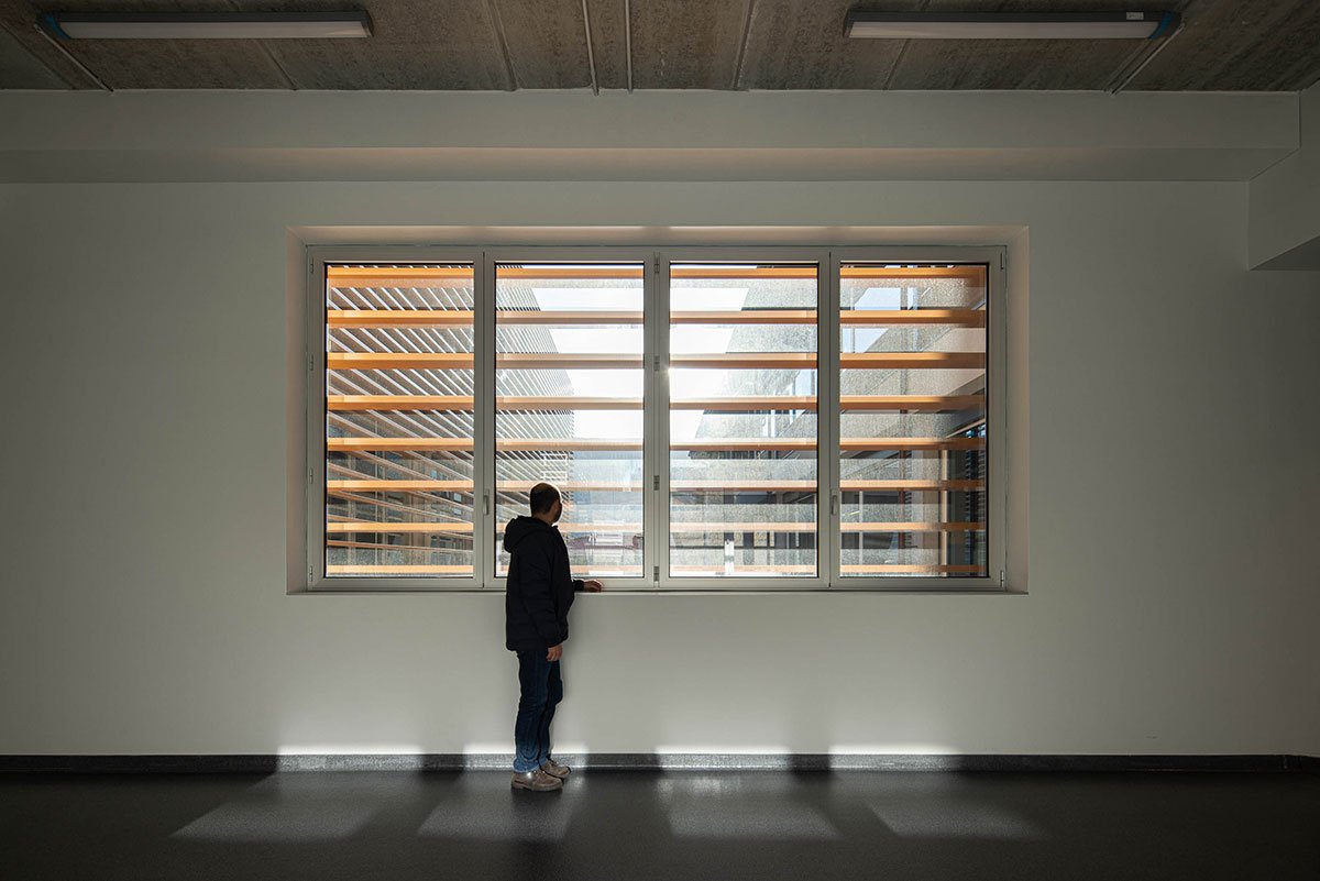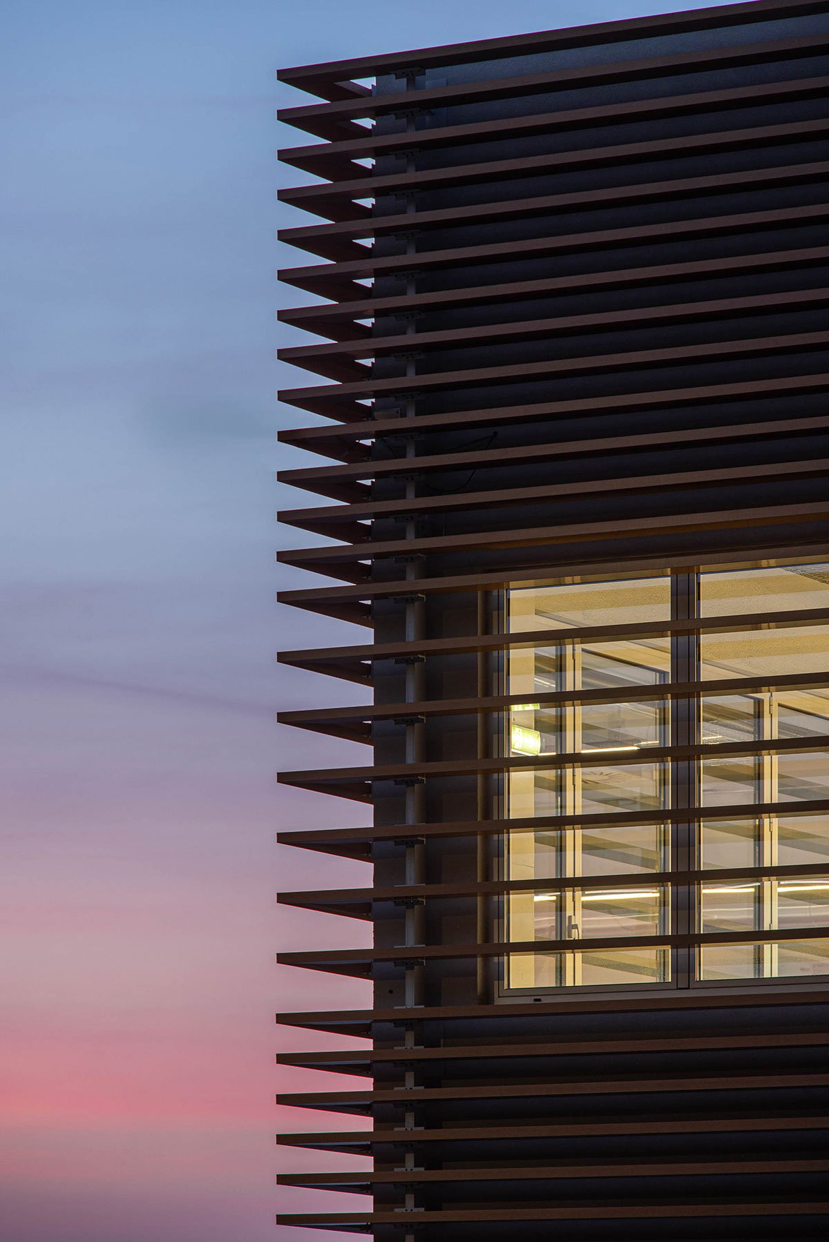 With the image of the new building, the aim is to create a bolder and more distinct architectural approach between both buildings, yet friendly. This solution, with a more audacious character, with thermal concerns, takes aesthetic advantage of the blades that sometimes create moments of shadow and sometimes create moments of more tenuous and controlled light.