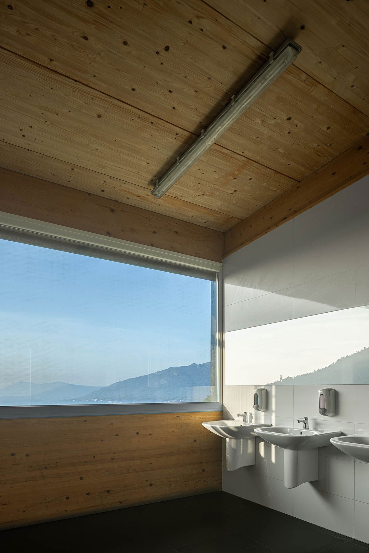 As in the existing building, the predominance of wood is a relevant point and affirms the building’s image, hence the veneers of the new building seek a certain symbiosis with the current one, with the lacquering of the veneers alluding to wood. It is a more neutral building, especially on the interior, in which wood no longer exists and the structure materializes in a concrete structure painted in white.