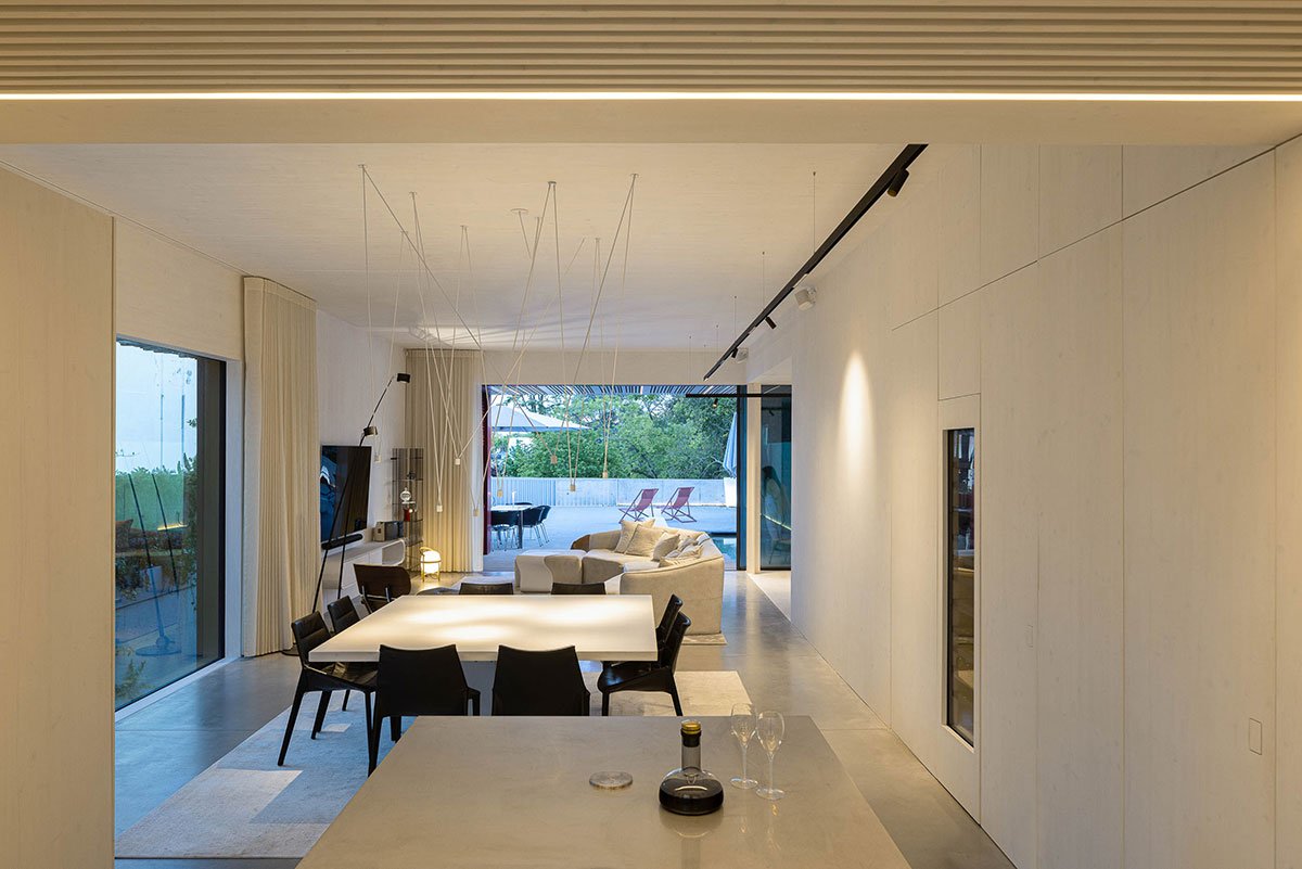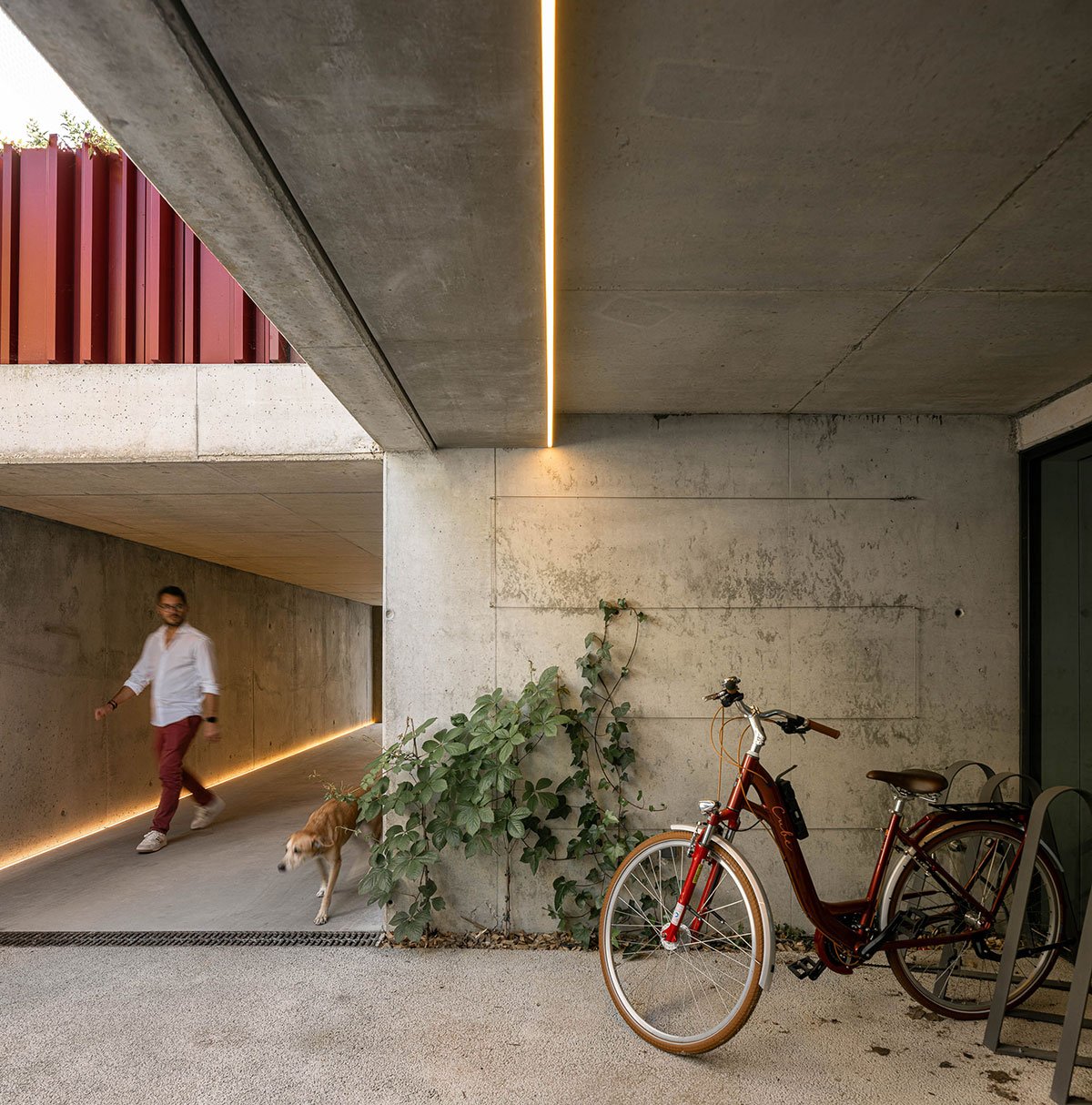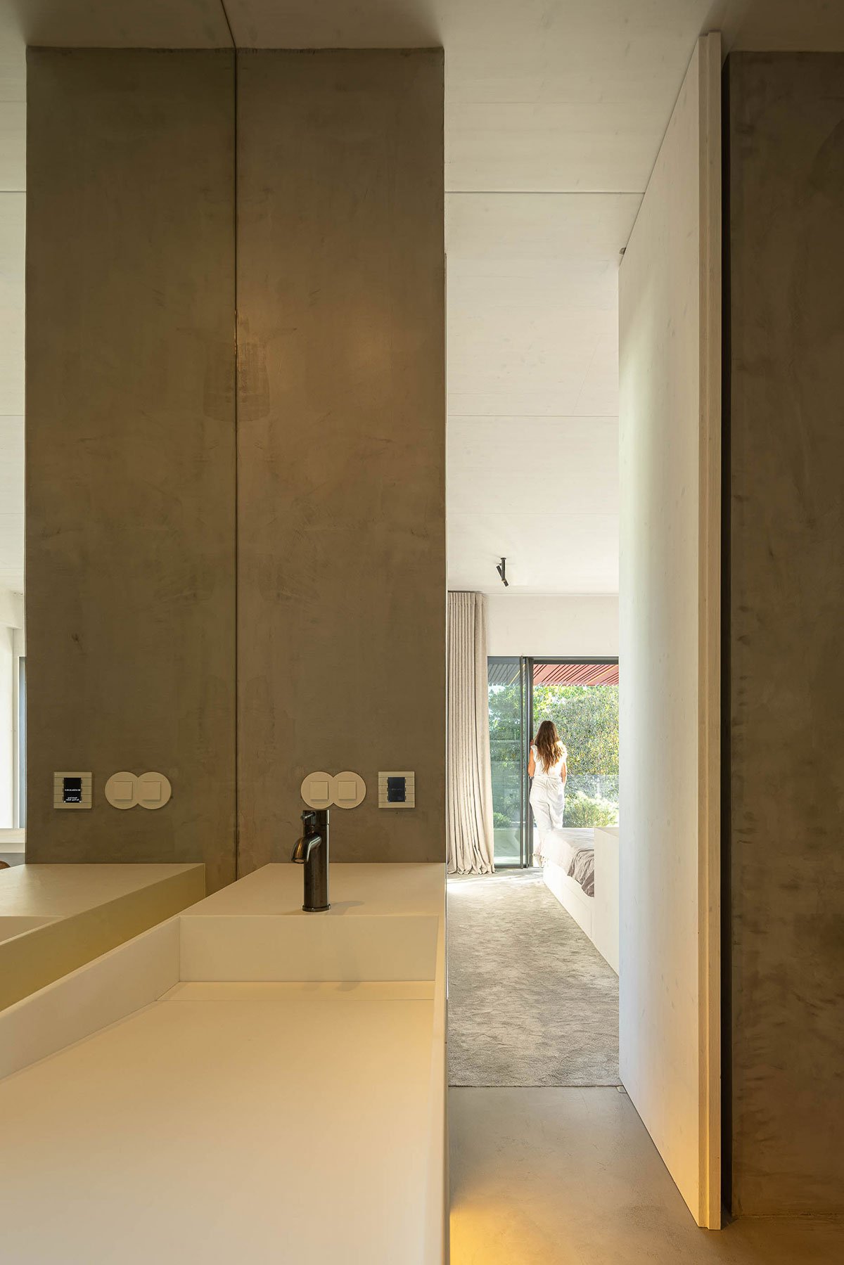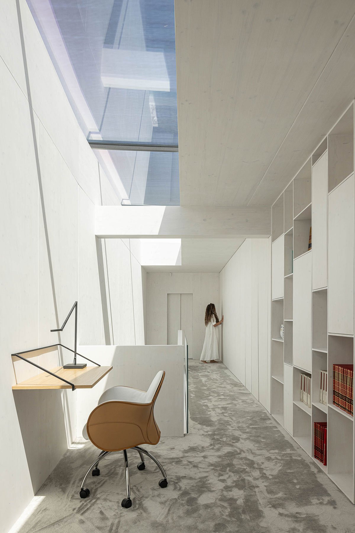 Constructed with the soul of wood (CLT), the house is organized over four floors: a garage and workspace in the basement floor, as an invitation to introspection and reflection; social spaces on the ground floor, inviting gatherings and sharing; the upper floors house four suites, and finally, crowning the structure, a terrace that offers 360o view over the city.