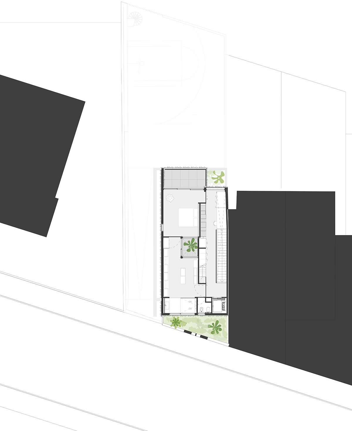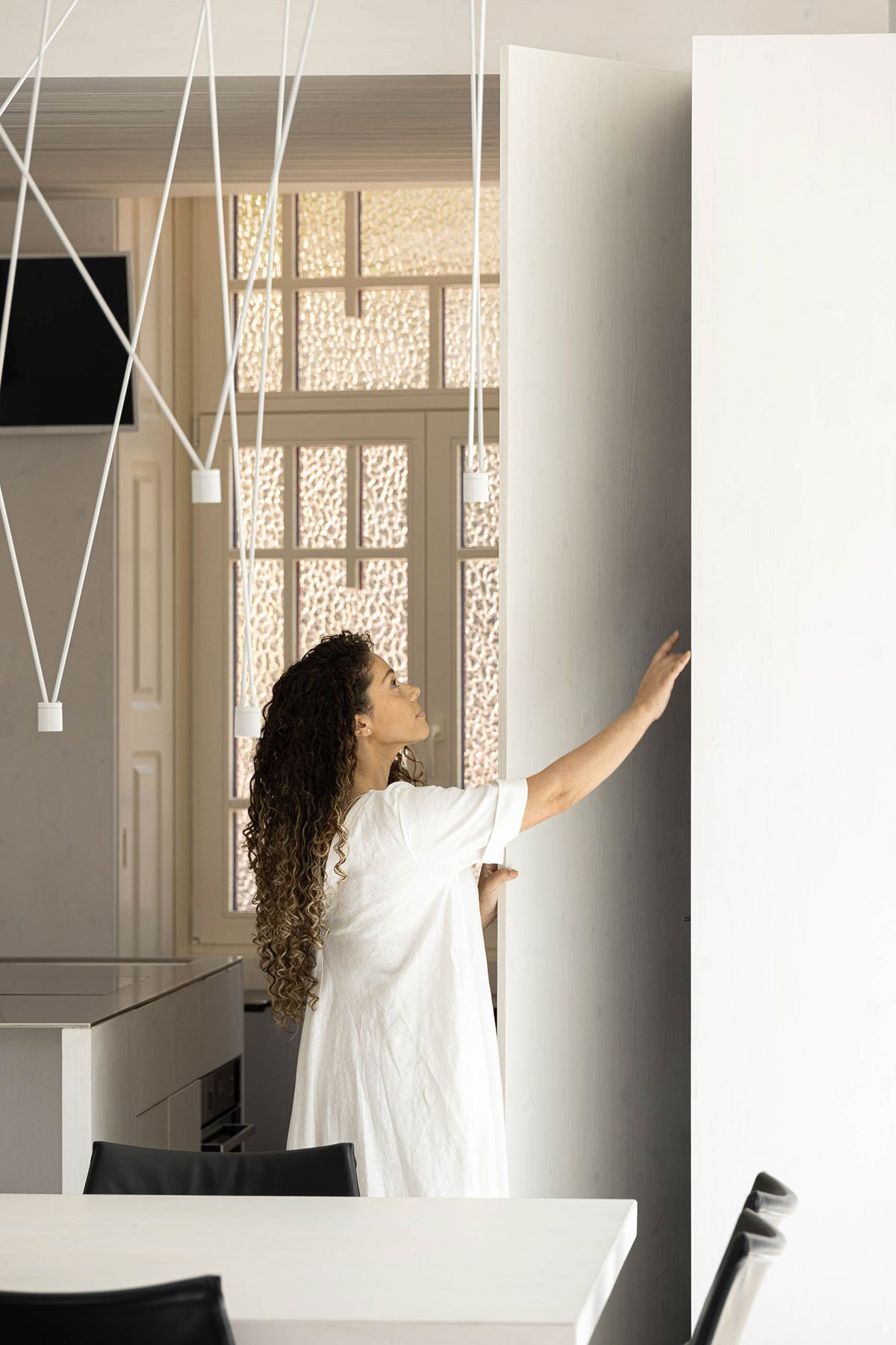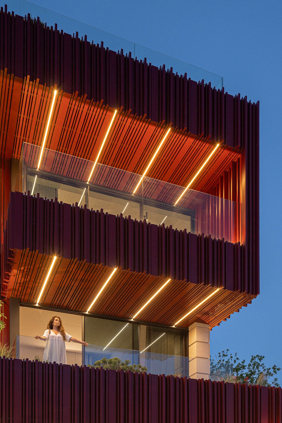 Respecting the memory inscribed in the building’s original skin, the Park House unfolds towards the green heart of the city, as if it were carved directly from the essence of the old facade. Its stony body, extruded from the original facade and carved by wooden slats, cuts through space creating a visual narrative that celebrates the passage of time, with lines and shadows dancing to the rhythm of the years.