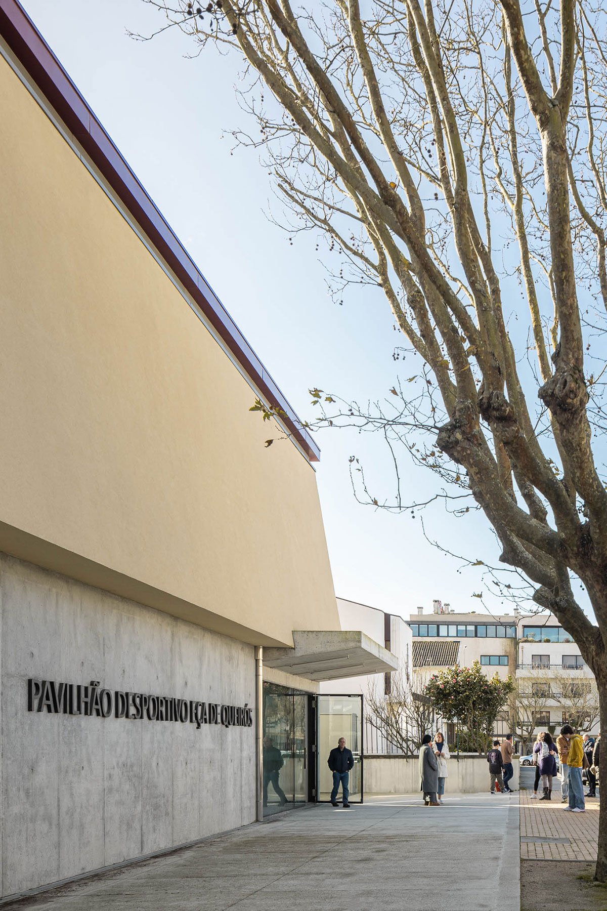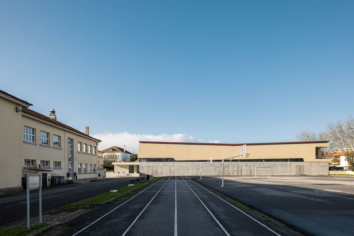 Excerpt: Pavilhão Desportivo da Escola Secundária Eça de Queirós designed by Oval is a very cautious implementation proposal, mitigating the impact on the existing athletics track and making the intervention minimal darning in the urban fabric of the complex. At the same time, throughout the design experience, a new architectural grammar was sought in order to integrate the new volume into a whole with a historical context.