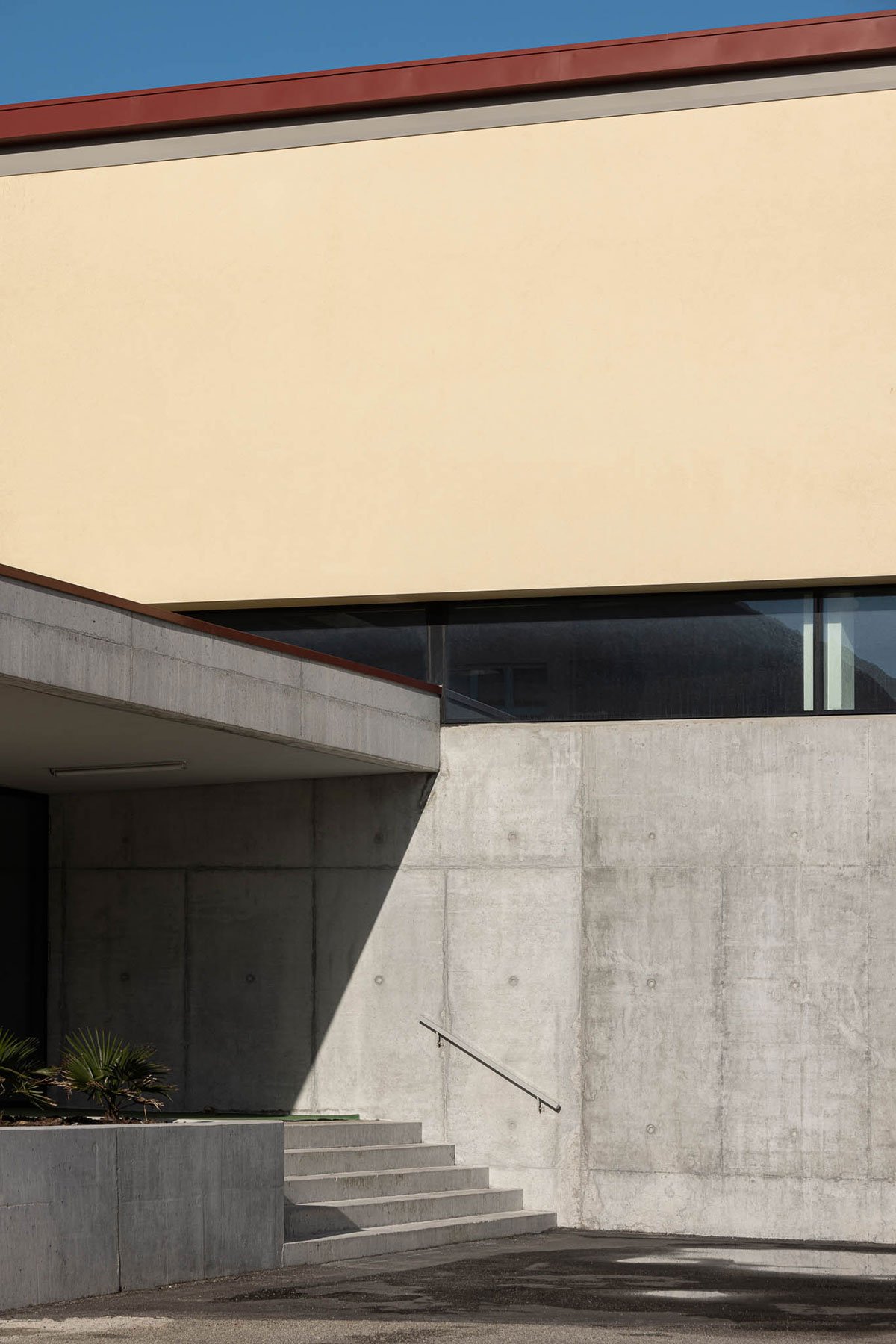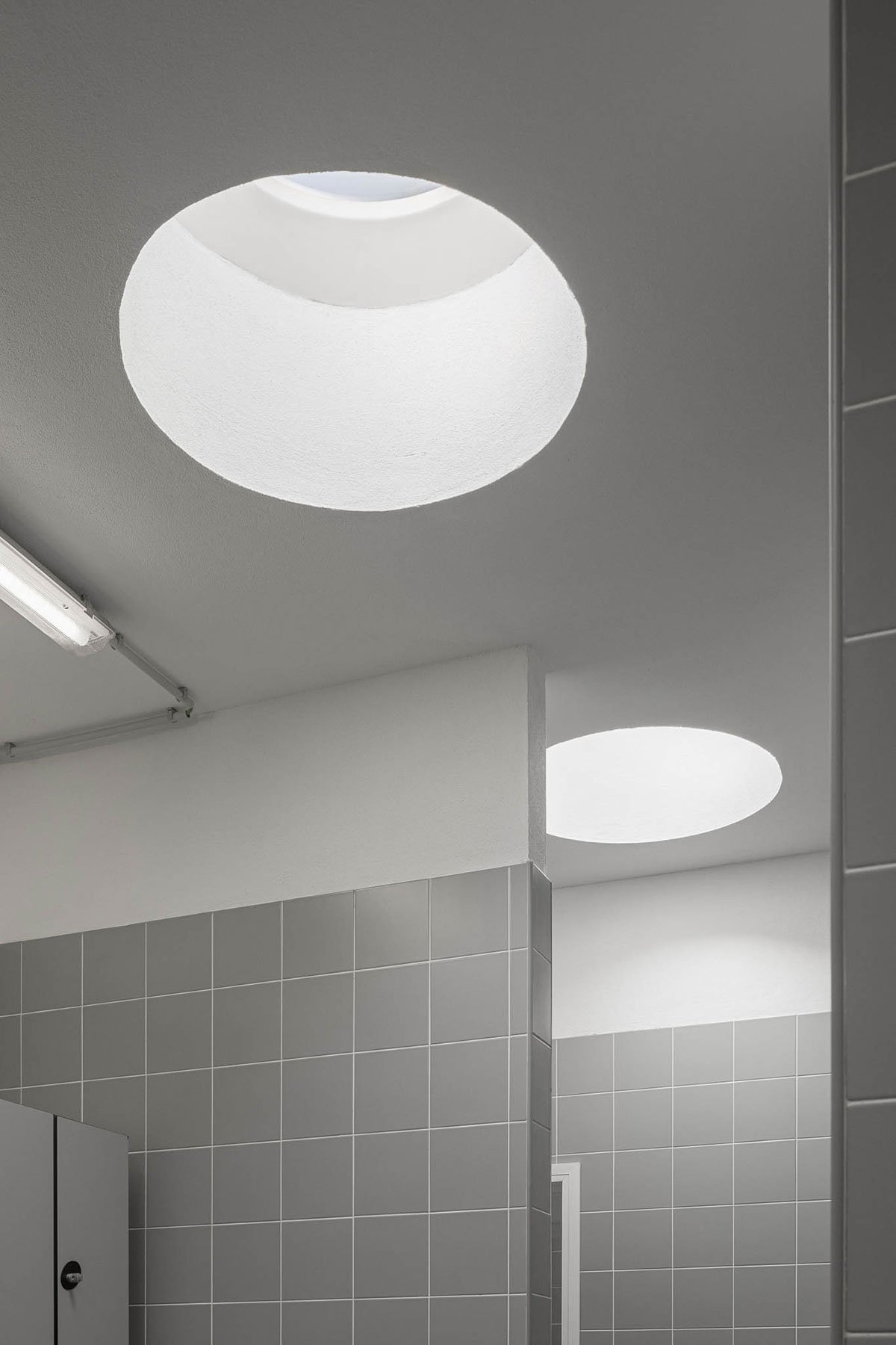 The walls will be in concrete (at the base) and in a concrete block coated with a thermal insulation system on the outside (from level 1 to the top) in a champagne colour – identical to the outside of the existing school. The complementary building (shower rooms and support areas) were built with a structure in reinforced concrete. Inside, non-slip ceramic tiles, in stoneware, will be used for greater levels of resistance.