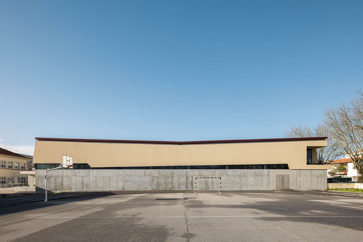 [Text as submitted by architect] The challenge in this project was to include a new sports facility in the complex of Escola Secundária Eça de Queirós. Despite having ample outdoor space for sports, with soccer fields, other sports and even an athletics track, this High School, located right in the urban center of Póvoa de Varzim (with two and a half hectares), did not have adequate space to allow physical practice in any weather condition.