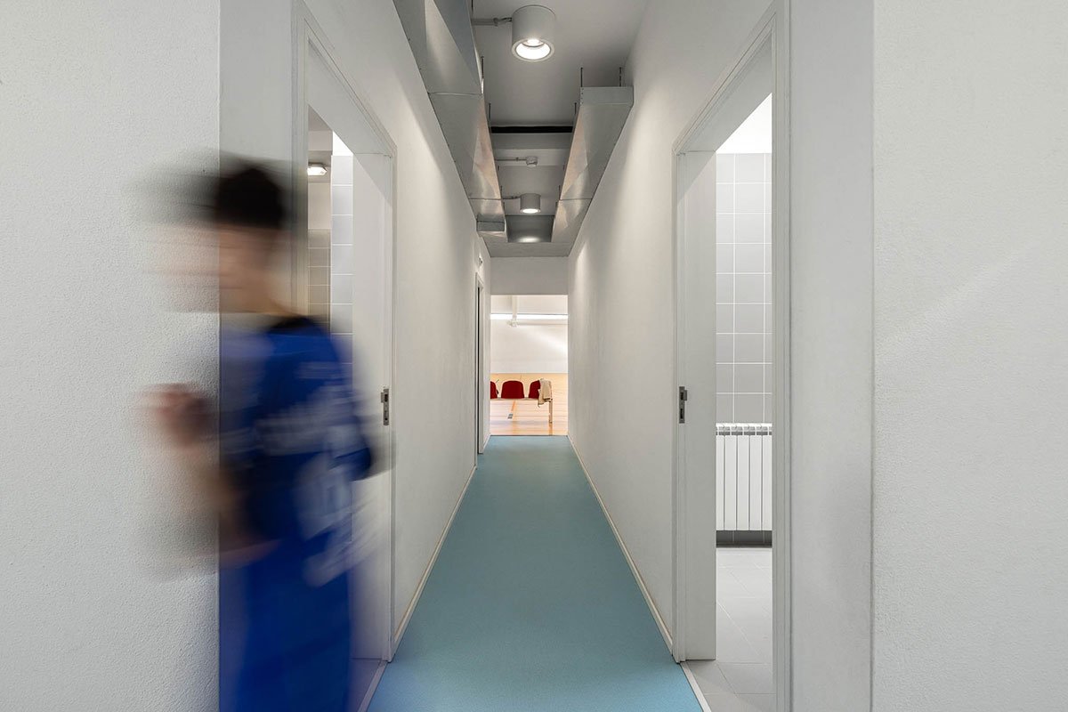 These constraints implied a very cautious implementation proposal, mitigating the impact on the existing athletics track and making the intervention a minimal darning in the urban fabric of the complex. At the same time, throughout the design experience, a new architectural grammar was sought in order to integrate the new volume into a whole with a historical context.