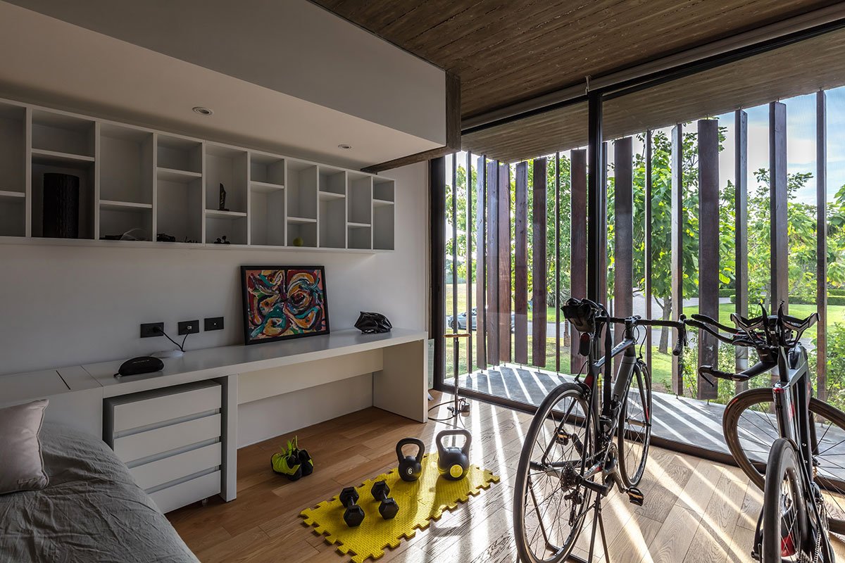 A master bedroom with a bathroom and large dressing room, two guest bedrooms with a bathroom to share, a large social area with an integrated kitchen and, linked to it, the laundry room and the maid’s room. A “refuge” (space named after them) next to the dining room to “lie down” to rest, read or watch TV, with a large bunk bed as the main equipment. A covered garage for two vehicles and two uncovered spaces for visitor parking.