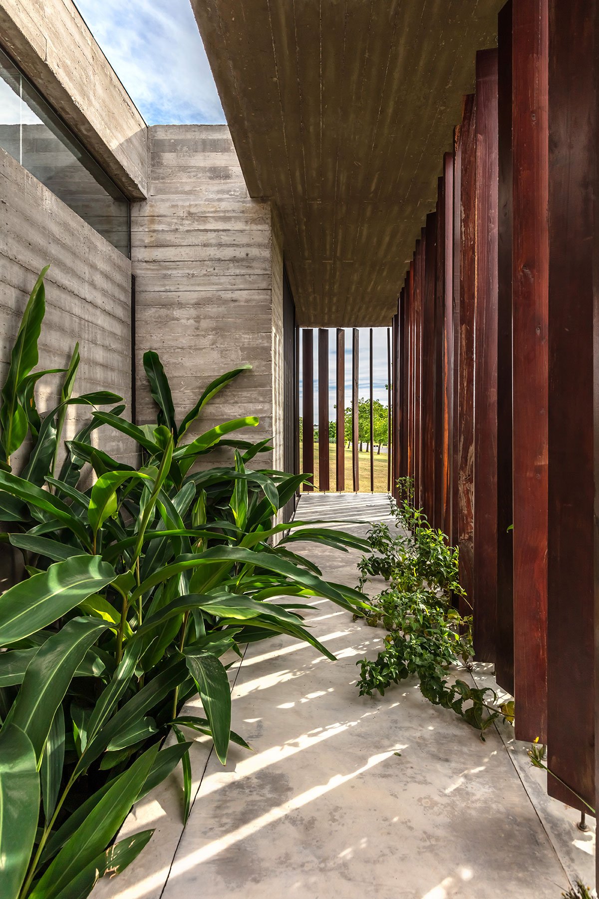 [Text as submitted by architect] Pilará House is located in a Country Club a few minutes away from Pilar. It is a rural urbanization of large lots, developed on the former ranch lands of the Pampa plains of Buenos Aires. The main landscape feature of its quarters is that it has maintained the soft sinuosity of the meadow, planted with different species of native trees and bushes, accompanying the layout of the urbanization.