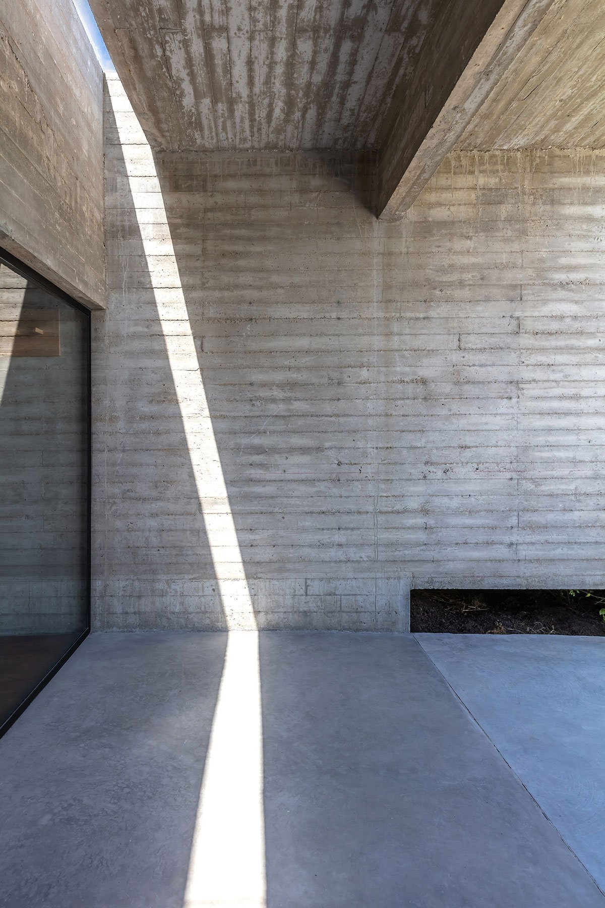 The house was conceived as a single volume that, occupying the entire silhouette allowed by the building regulations, would be structured according to an orthogonal grid that would allow it to be pierced towards its interior, giving rise to the creation of courtyards of different scales according to the requirements of use and ambiance of the activities programmed in them. These courtyards serve both to communicate spaces and to isolate them from each other but, above all, their purpose is to create a landscape from the architecture itself, so that living in this house is an experience where the limits between inside and outside are diluted to enjoy a climate that allows it, and also the contact with a landscape designed with native vegetation always changing throughout the year.