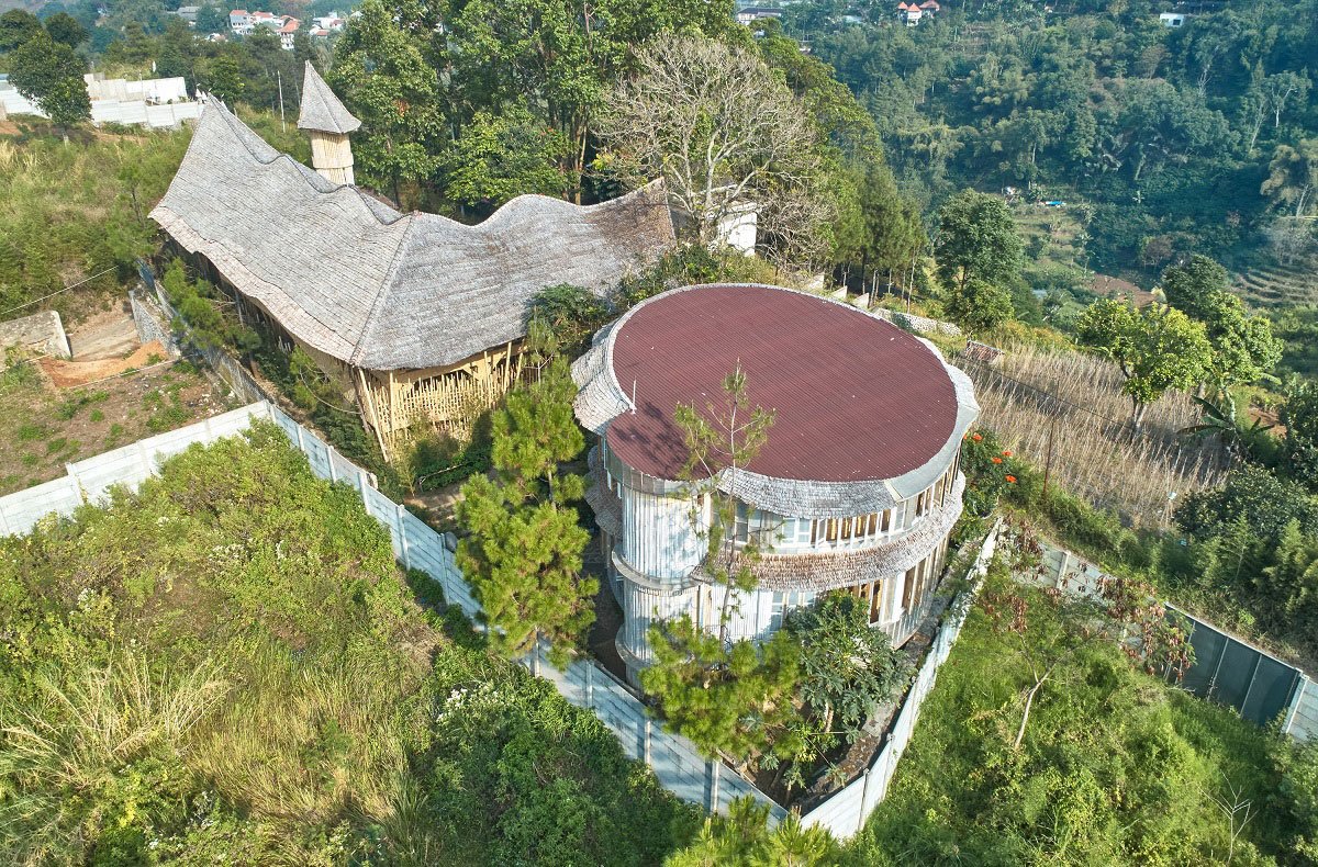 [Text as submitted by architect] Piyandeling is located in a remote area of Mekarwangi Village, Bandung. This project is a sanctuary space that exercises the design based on the tectonic grammar that was elaborated from Guha Bambu and Alfa Omega School, it forms an adaptation of traditional and more industrial approaches mixing traditional joineries and glued joinery of bamboo. Piyandeling consists of 3 components, the first one is a private family building named “Sumarah”, the second is a hall that is an open space designed for a future educational platform for kids in Mekarwangi village named “Kujang”. The third is a future dentist space, a design studio named “Saderhana”.
