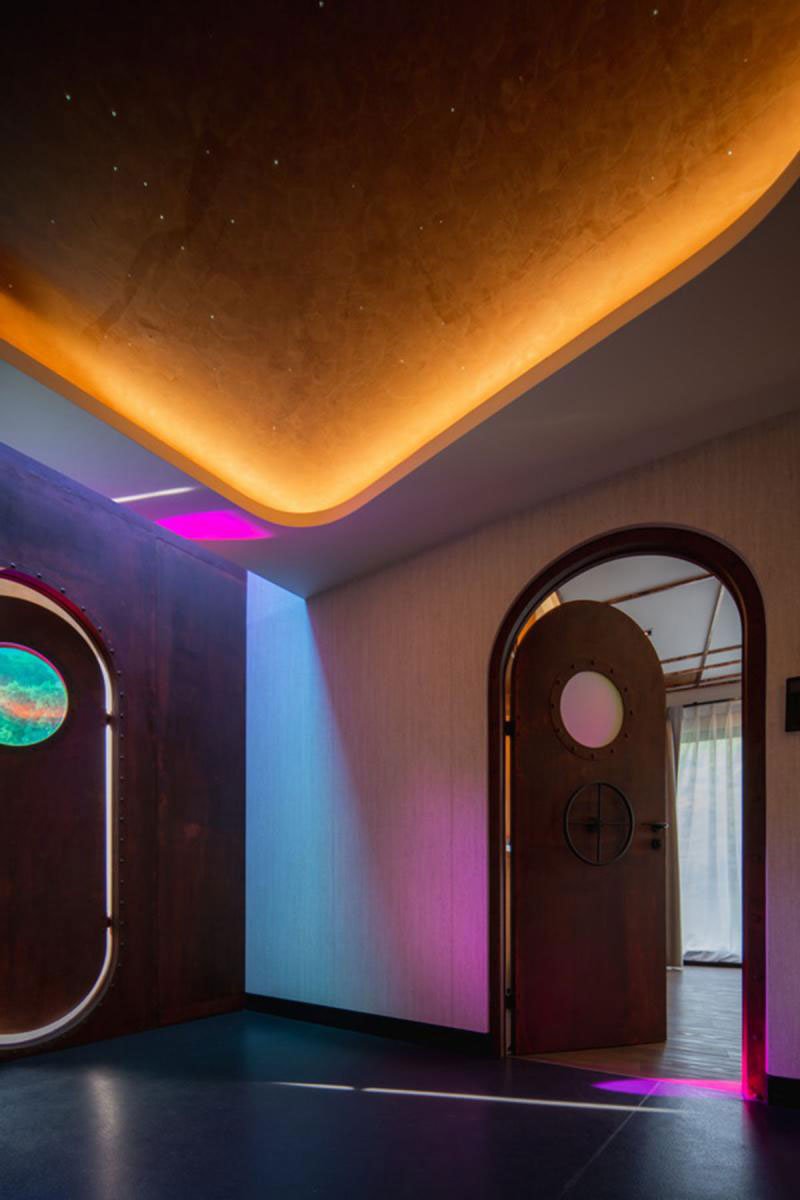 Inside the engine there is a reasonable feeling of driving. So that for design it by mixing with organic and mechanic together, so there’s a fun space from the entrance hall. That can be accessed from 2 sides. The side that enters from the bottom of the fish has dramatic from space at the line and light. Different during the day, at night, the rooms are separated as if they were inside the fish. There is a male, female fish and internal elements by using a plane that looks like the organs of PLA2+MACHINE.
