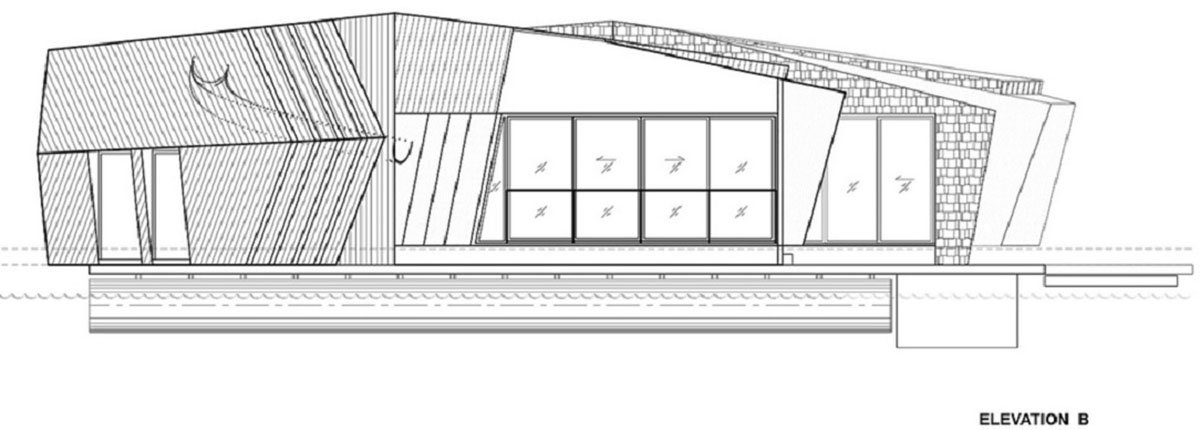 On the surface of the material we should from context and usage conditions. We use wood as the main material. Steel with lightweight. On the other side is a shingle roof, a shape that looks like lightweight, as you can see that metal is inserted to show the machine (Submachine) out of the gill-like area. By selected color We want to feel like a freshwater fish. Therefore, it is blue as in the picture, using steel plate, give a feeling of having the element of organic in the fish in the gill area. There will be a channel that we open to the effect of light in the evening at night. And the front area uses rust-etched steel to show the truth of the material. This color was chosen because it has a red texture that gives the fill of the gills when the mouth is opened.