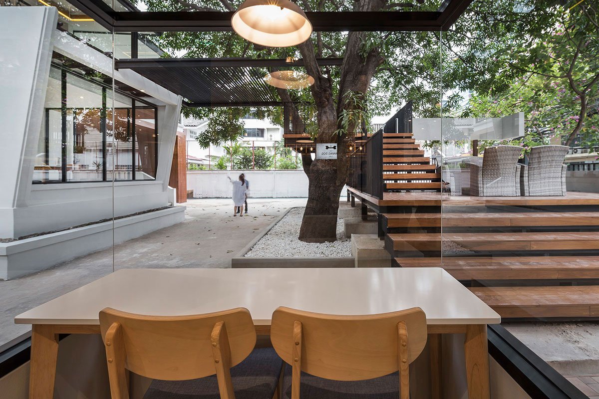 For “A STEP-LIKE DINING”, there is an existing mango tree, which creates shade and ambience of the site. The space under and around this mango tree will be used as a “co-outdoor space” for both restaurant and cafe. Creating a step-like not only for easily being seen from outside which will attracts more people, but also allows more privacy for those.