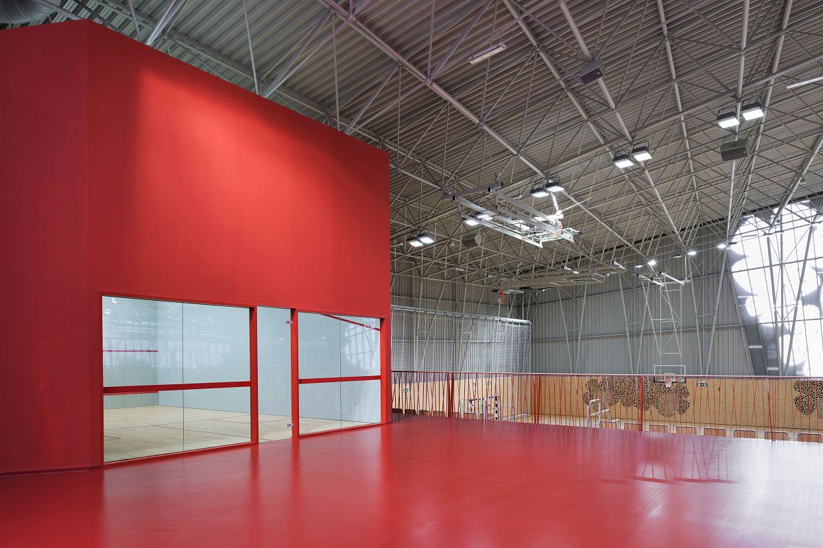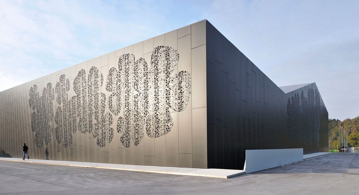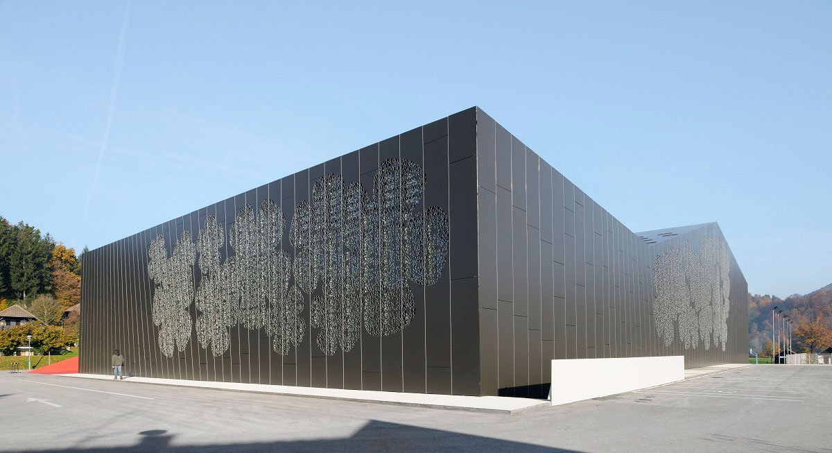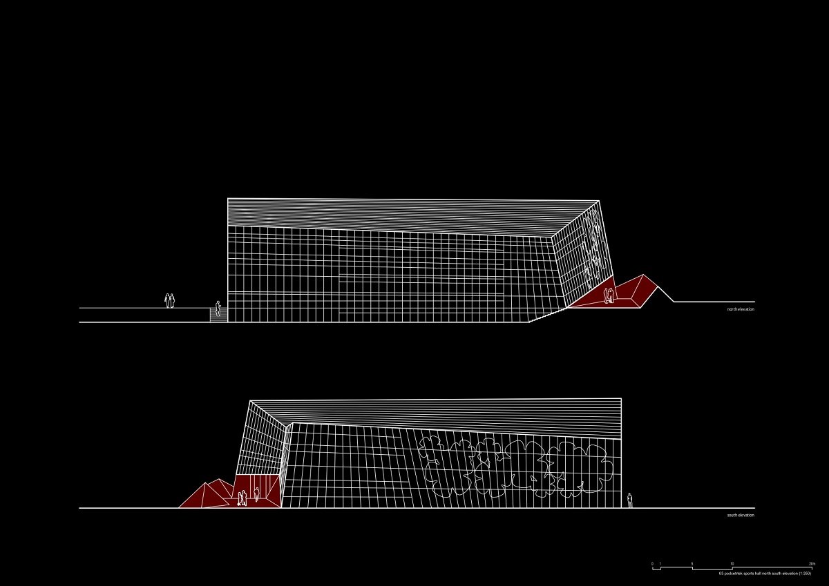 Excerpt: Podcetrtek Sports Hall, designed by ENOTA, appears as a response to its role in the town, being the only large indoor venue. Though it is designed primarily as a sports hall, it also plays the role of the main municipal hall for cultural events with larger audiences. The main design cue is a “red carpet” that leads the visitors to the events taking place in the building. The activity inside is directly mirrored on the facade and contributes to the promotion of the events and attractiveness of the building.