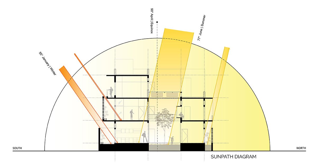 The family’s request for privacy in these urban surroundings – full of private houses and apartment buildings – challenged the architects and acted as their primary focus in planning and designing the house. The lot is 40′ x 60′ = 2400sq.ft, with a South facade. The architects wished to eliminate the environmental “noises” and create an urban villa with maximal privacy.