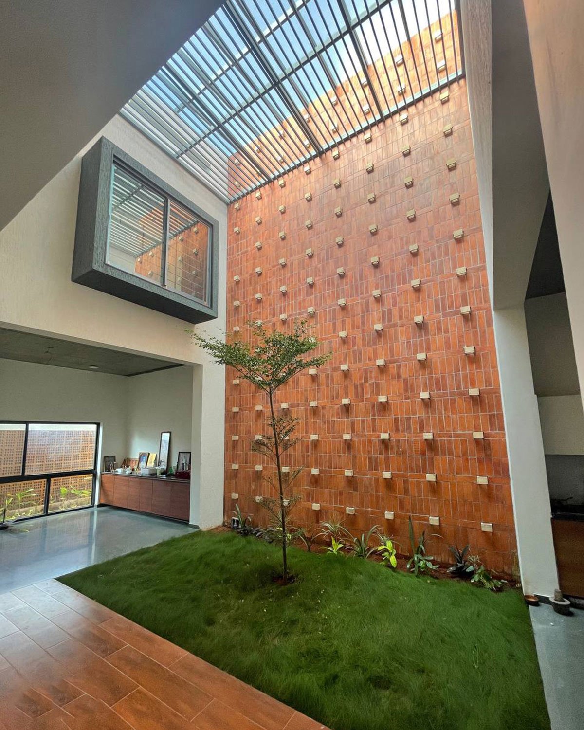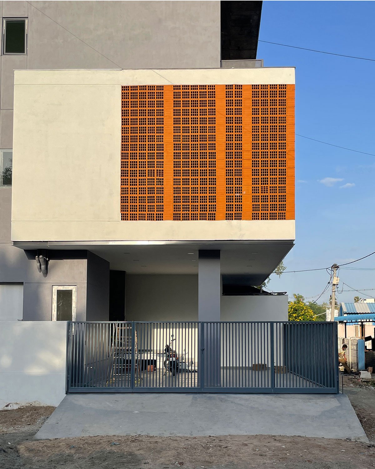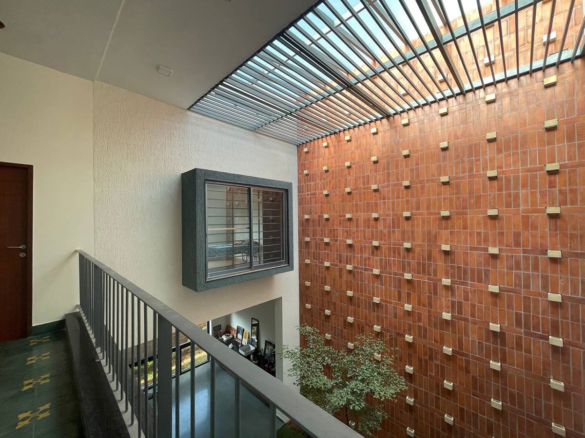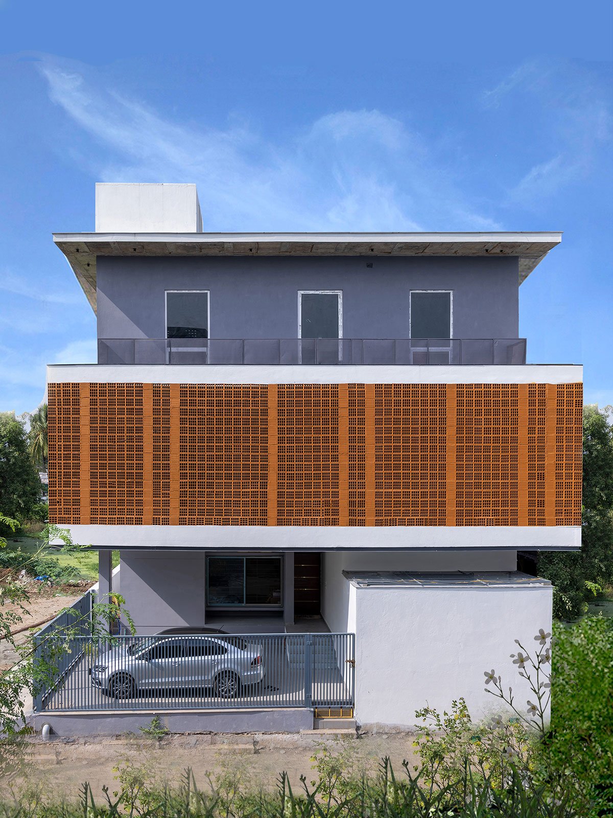 [Text as submitted by architect] After years of dreaming about a spacious and private house, this family decided to leave their apartment and build a customized home in a quiet neighbourhood in Samayapuram, Trichy. Right after choosing their lot, the family approached Unbox architecture with a clear vision – a practical and cozy home that includes three-bedroom suites for the family, a nice yard and most importantly – lots of privacy.