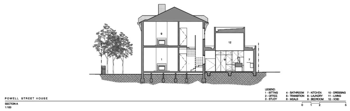 The addition, and the new architectural elements generally, read as new inserted elements within the existing fabric, and contrast with the materiality of the original. This is expressed in the use of steel for the window frames and external cladding. Views were curated through the new steel windows utilising a combination of clear and opaque glazing. Internal colours were selected to connect spaces, and respond to the varying volumes and light conditions throughout the house.