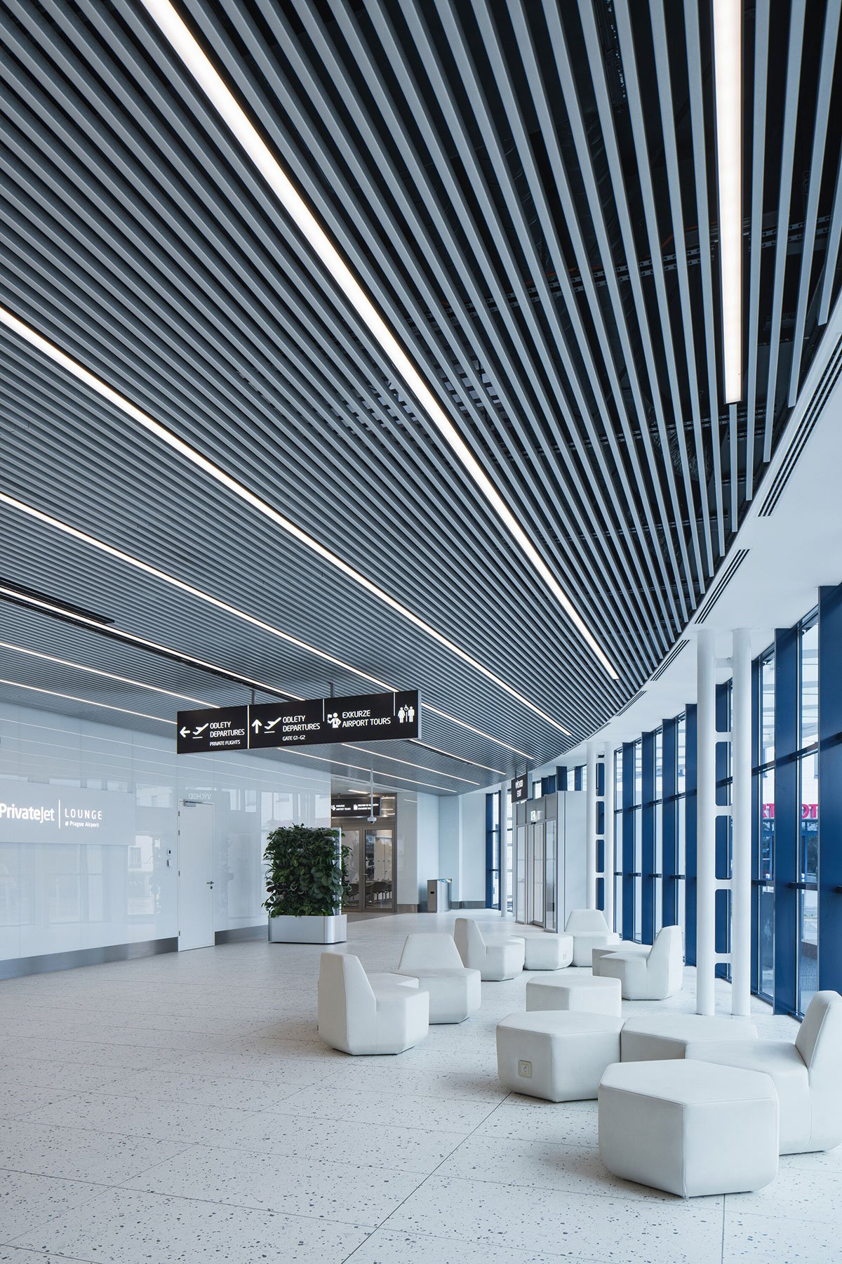[Text as submitted by architect] Airport terminals are often the first spaces to shape a visitor’s impression of a country. They blend the emotions of both welcomes and farewells, marking the transitions of arrivals and departures. With this in mind, Terminal 3 at Prague Airport—used primarily for private aviation—underwent architectural and spatial upgrades, aiming to achieve a more contemporary and representative appearance.