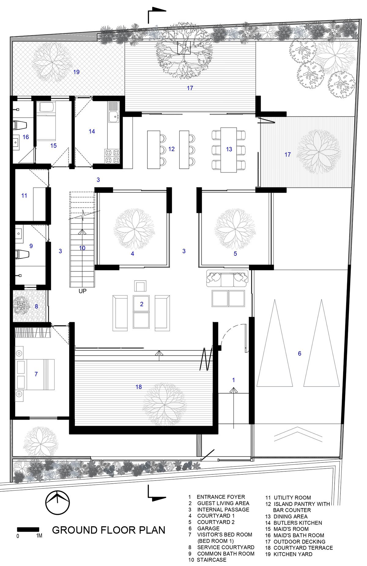 The space allocation and spatial progression, material usage and the unique architectural detailing have made this residence simple and complex at the same time with its design and detailing, while keeping elegance in its spatial simplicity.