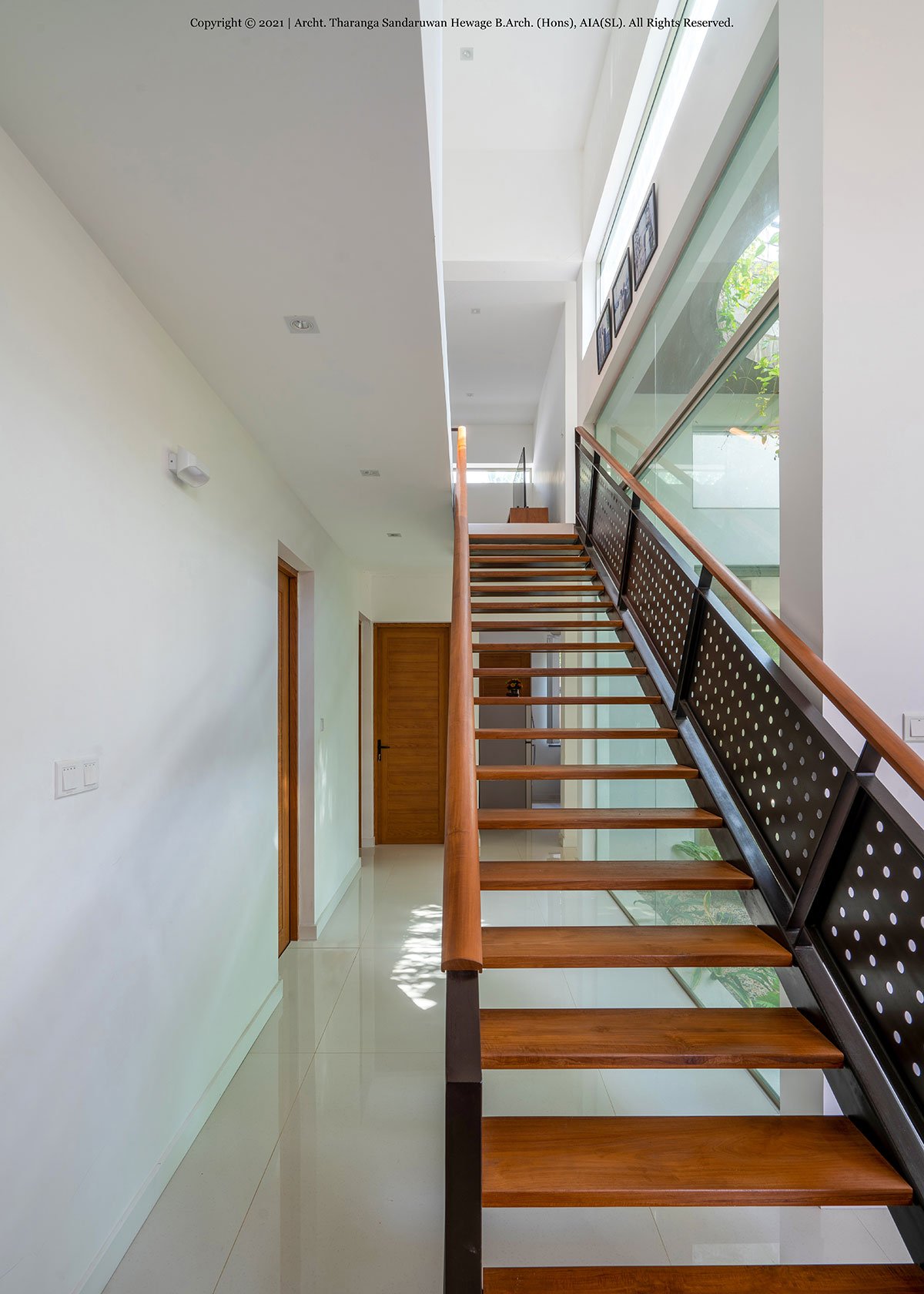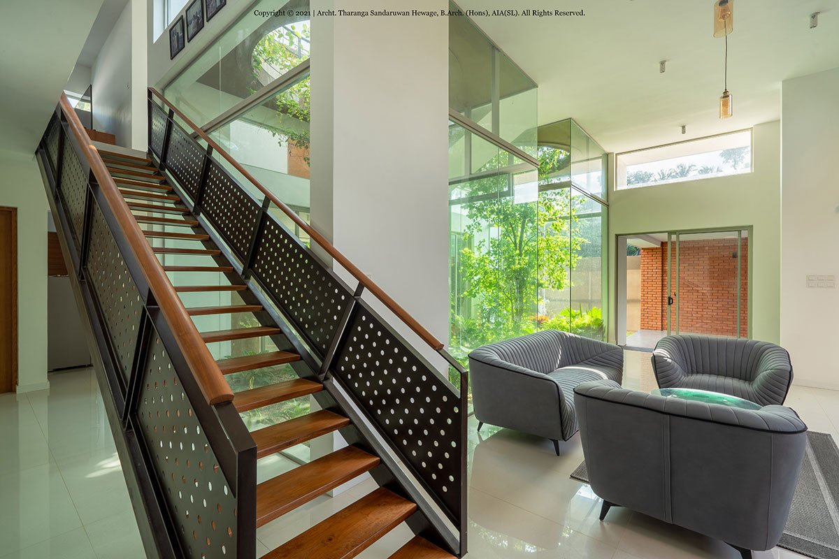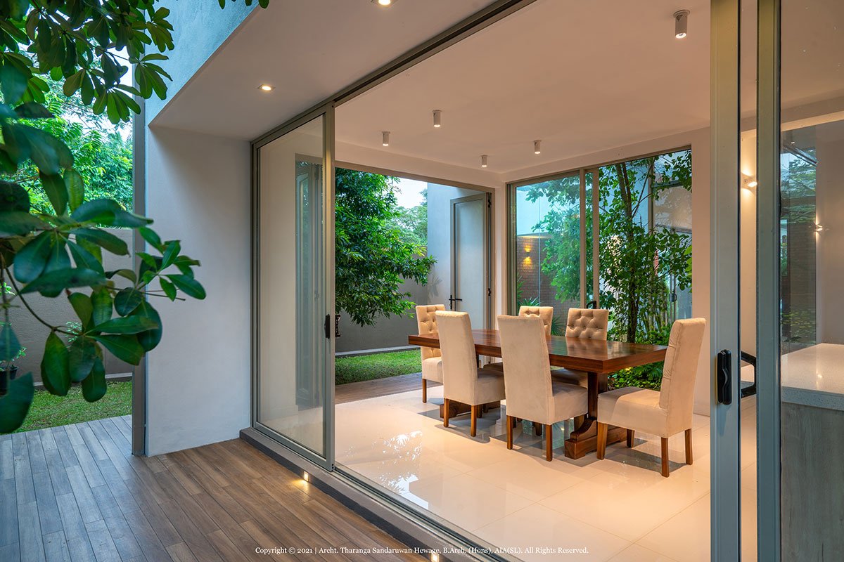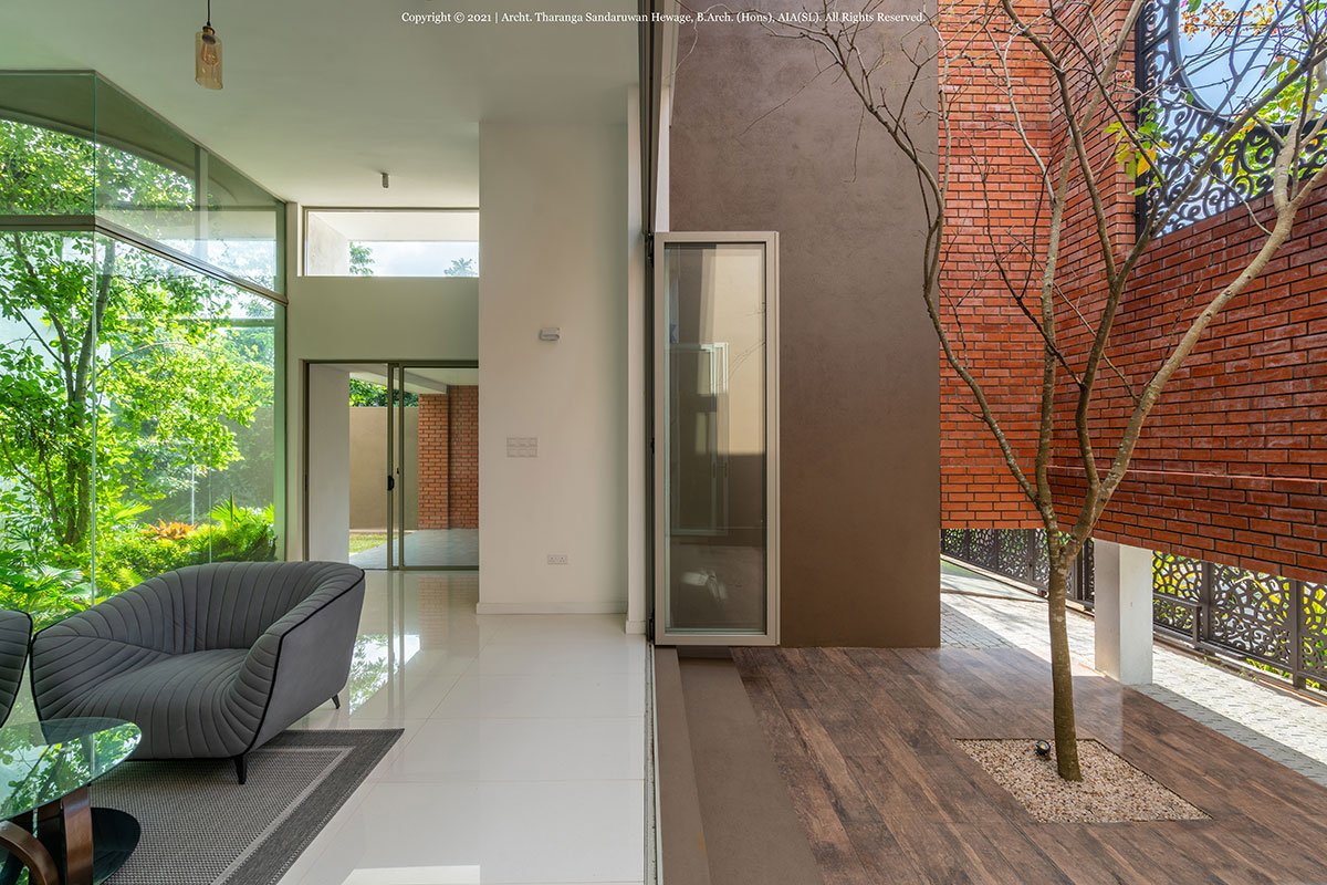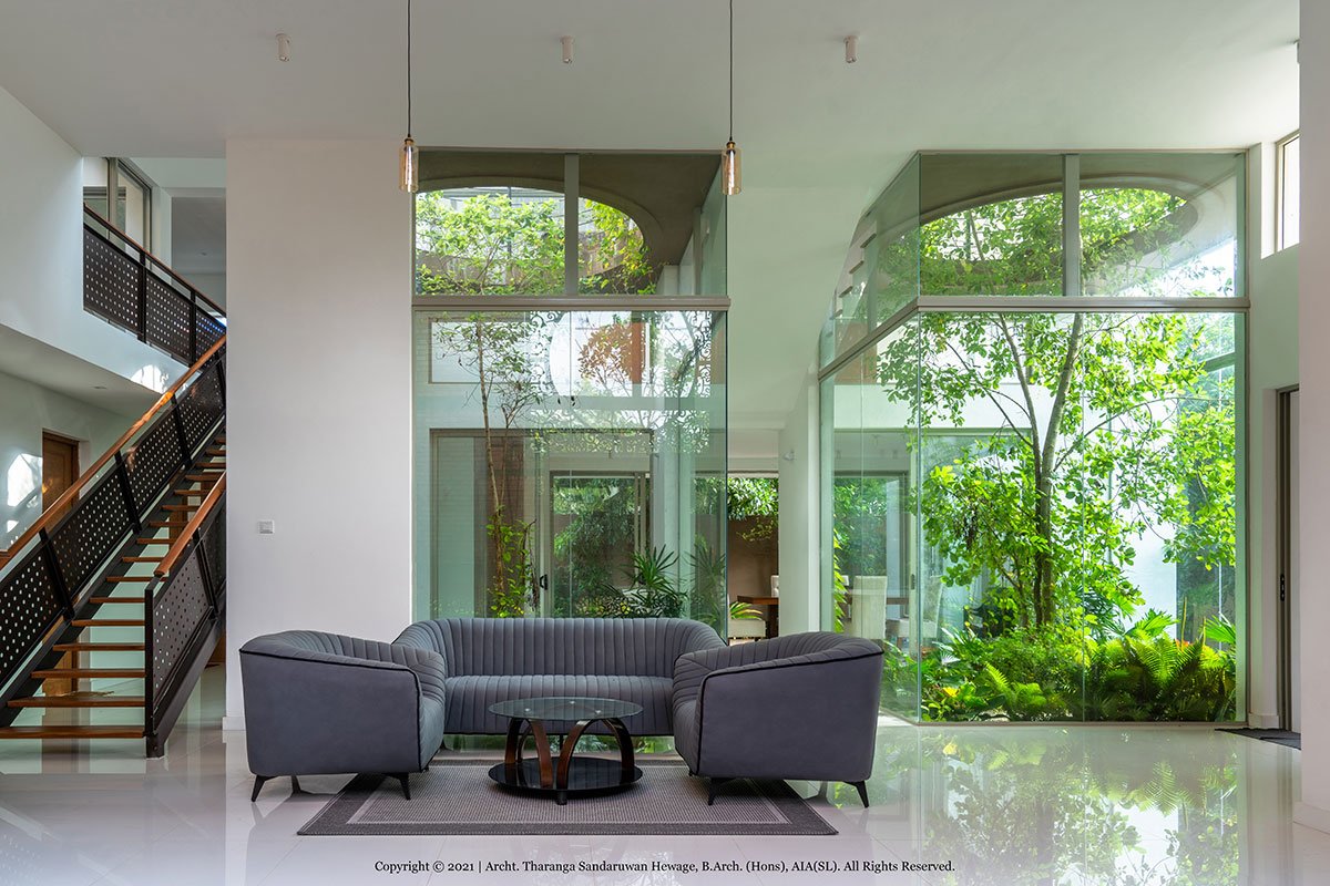 As well as being aesthetically pleasing, the internal courtyards function by letting in eastern light through fixed tempered glass and openable sliding windows allow cool air and daylight while the transitional passages around the internal courtyards provide serene accessibility toward each space by interconnecting each one.