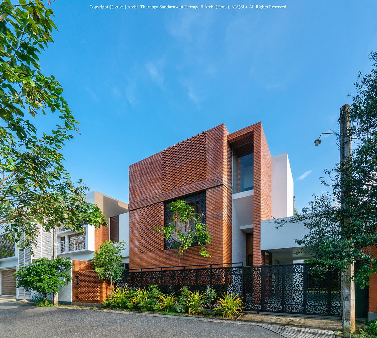 Project: The site is located in a secluded area that is perfectly nested to allow tranquil living, keeping enough proximity to the city. The residence lies on thirteen-point five (13.5) perch square-shaped land that is, compact, facing a street bend, and visually imperceptible due to the high façade brick wall in addition to the adjoining residences bordering the site.