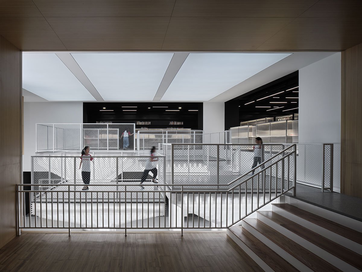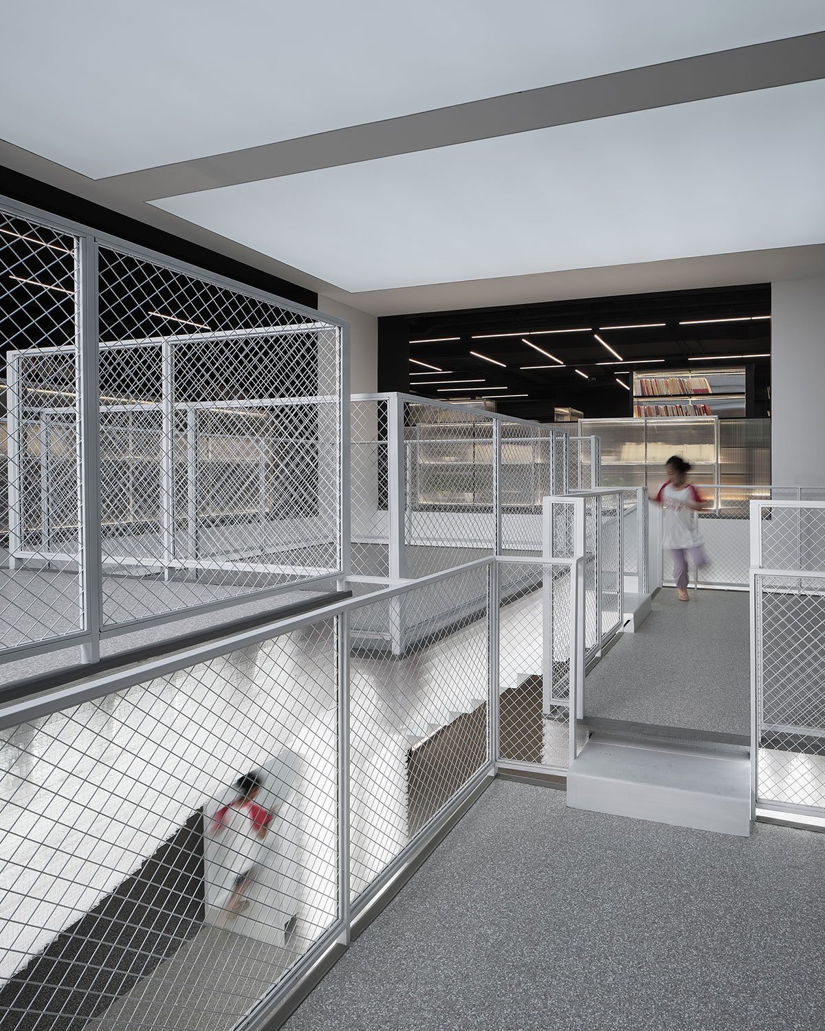 [Text as submitted by architect] The project is composed of four plastic prisms, located in an office warehouse of a high-tech campus in Shanghai. The renovation aims to turn the existing atrium into a reading space for staff and also accommodating public education tours for primary school students.