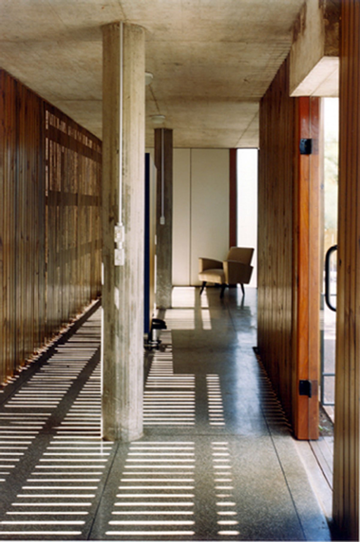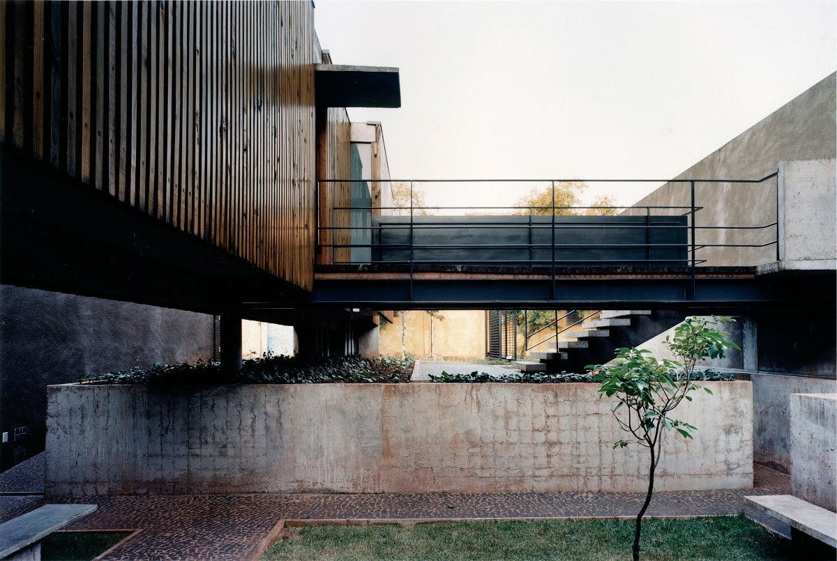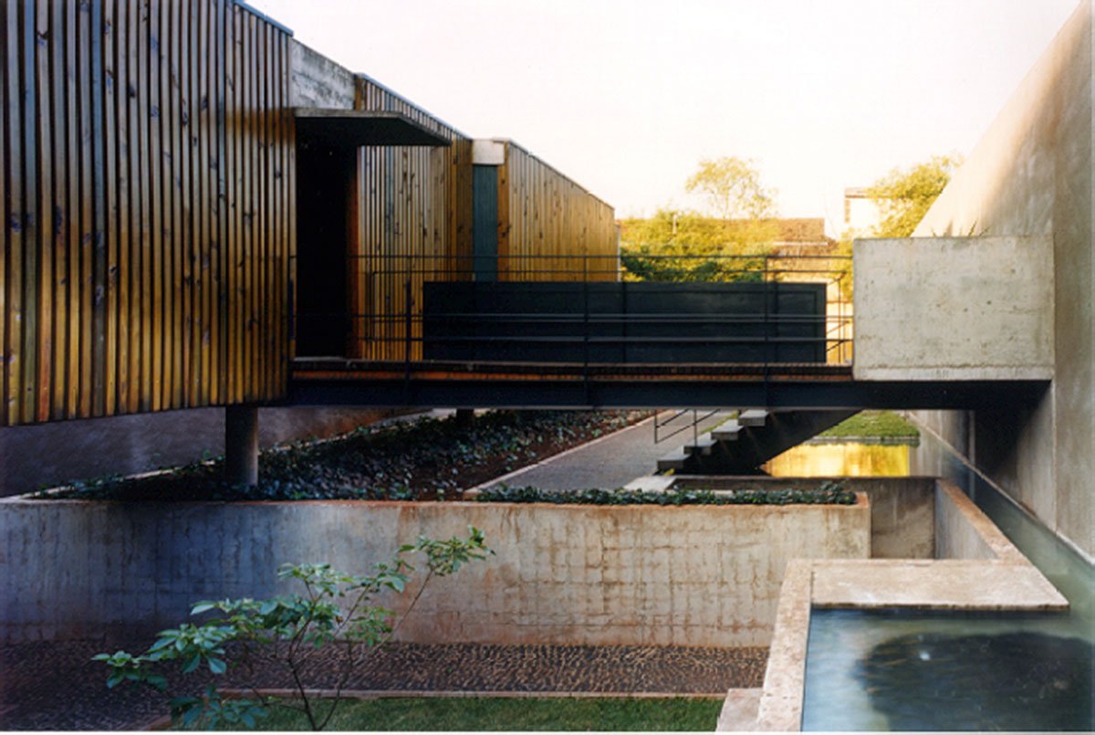 Two offices on the upper floor, library and study room on the lower floor, together, form the main elements of the program. The other support items were arranged along the circulation gallery with wooden closure – free of glass as a terrace – which is the structuring element of the set.