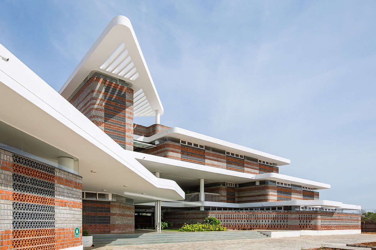 Excerpt: Rane Vidyalaya, designed by Shanmugam Associates, is an educational campus that creates an infrastructure that would have a positive social impact on the local community and also showcase the core values of Rane. The kindergarten classrooms are designed to have individual garden’s that encourage seamless outdoor and indoor integration of space. The overall design approach was to avoid sharp edges in walls, columns, slab edges and in every detail possible to ensure safety. Terracotta jalli has been used as secondary shading devices.
