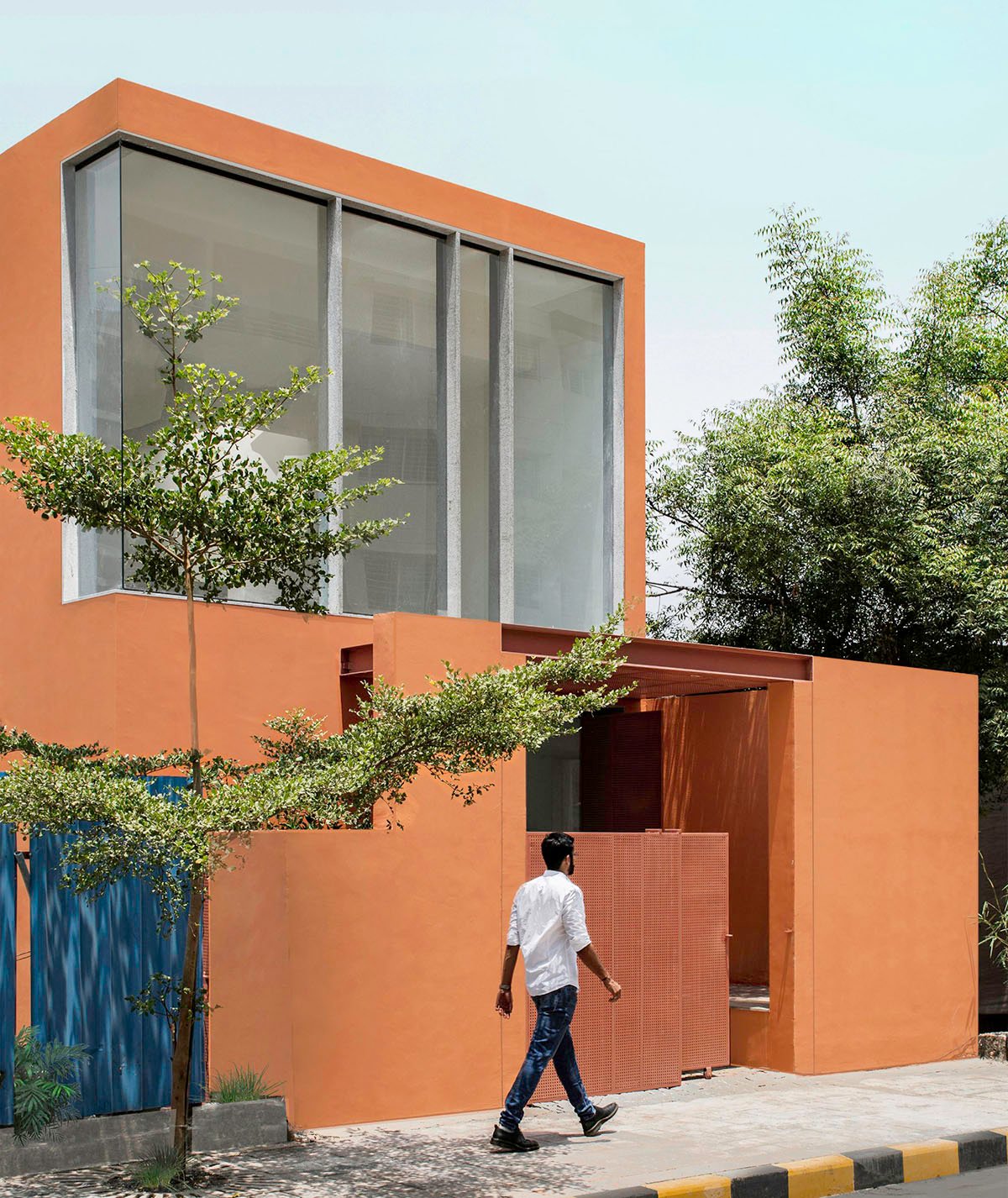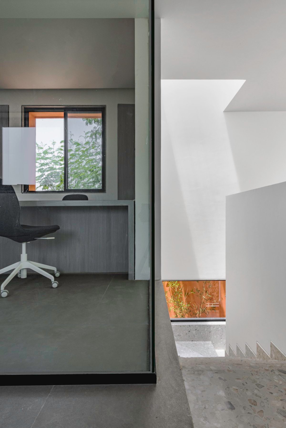 Excerpt: Red+White Office is designed by architectural and design firm Karan Darda Architects. The characteristics such as a dynamic yet minimal, striking volume, easy to recognize both from the residential area and the adjoining highway were considered. Considering the requirements, the team decided to make the buildings in 2 levels spatially connected by an exciting terrazzo cladding staircase in the lobby area. A skylight beautifully lights the double-height lobby area over the stairs and huge front-facing windows.