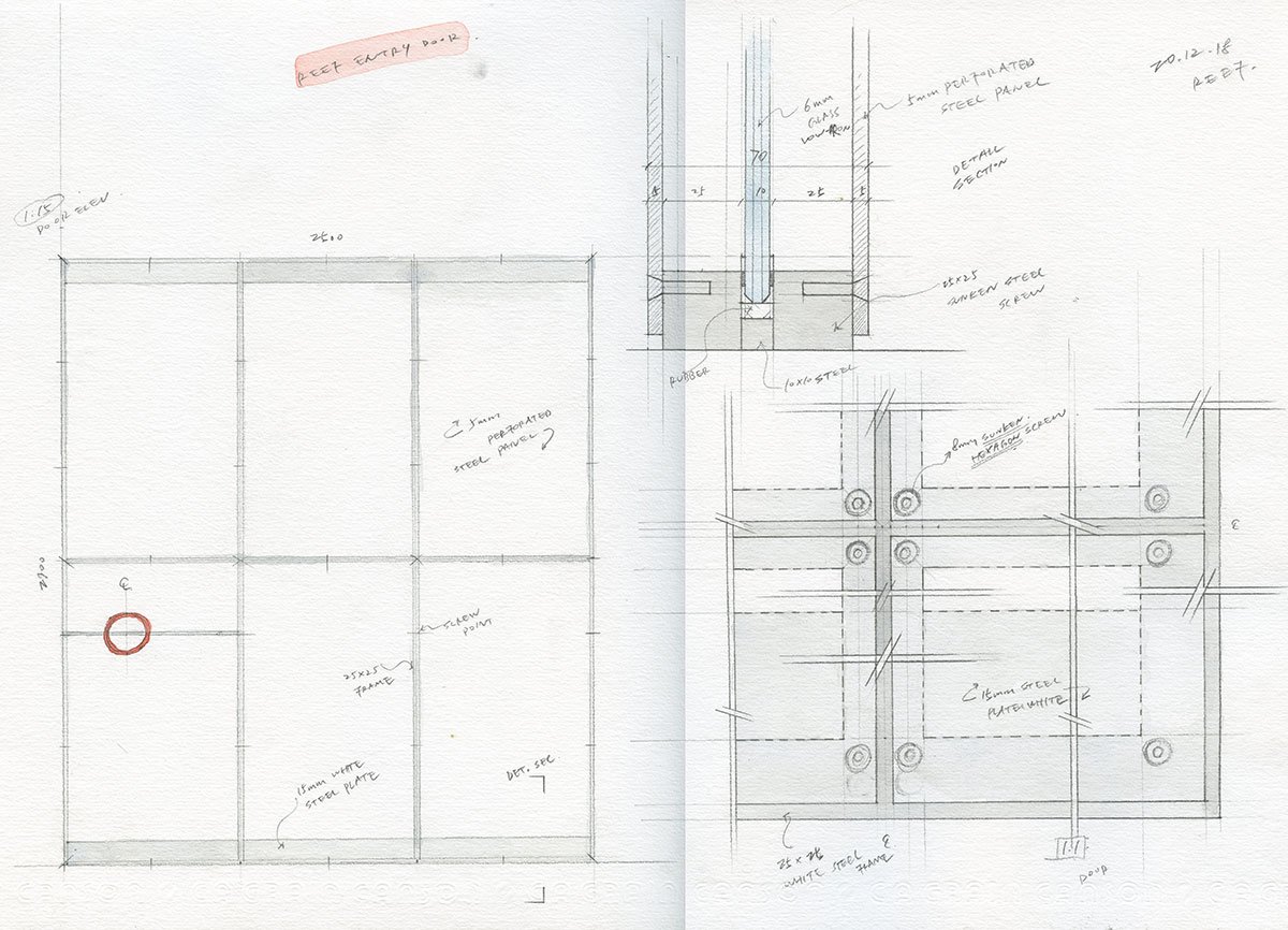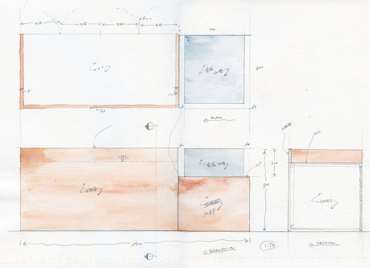 The women’s salon area on the second floor is reached through a staircase behind a perforated panel. Pink and red are the main colors of the ladies’ area, and the red metal divider grows from the first floor to the second floor. The red metal divider on the wall is the main lighting source for the space. When the light is reflected on the ceiling, it creates a soft and even lighting effect.