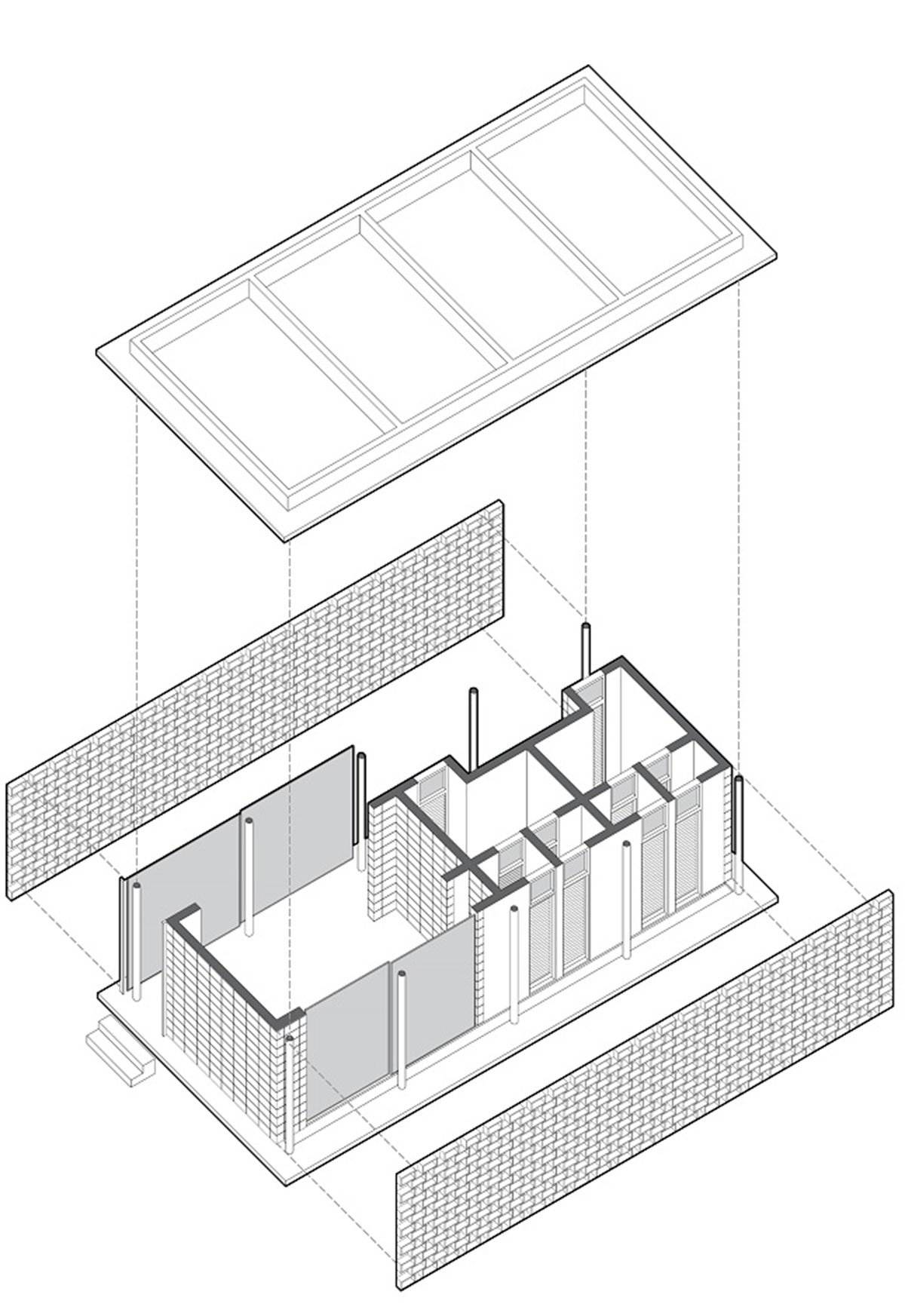 The project is basically constructed from a single element: the concrete block, so traditional in the Brazilian architecture. This material stands as structural element and all the project dimensions are modulated according to its size: precaste concrete panels as slab, terrazzo on the floor and glass screens. All the other materials keep neutral, emphasizing the concrete block as the most important element, which is visible in its original aspect, without covering or painting.