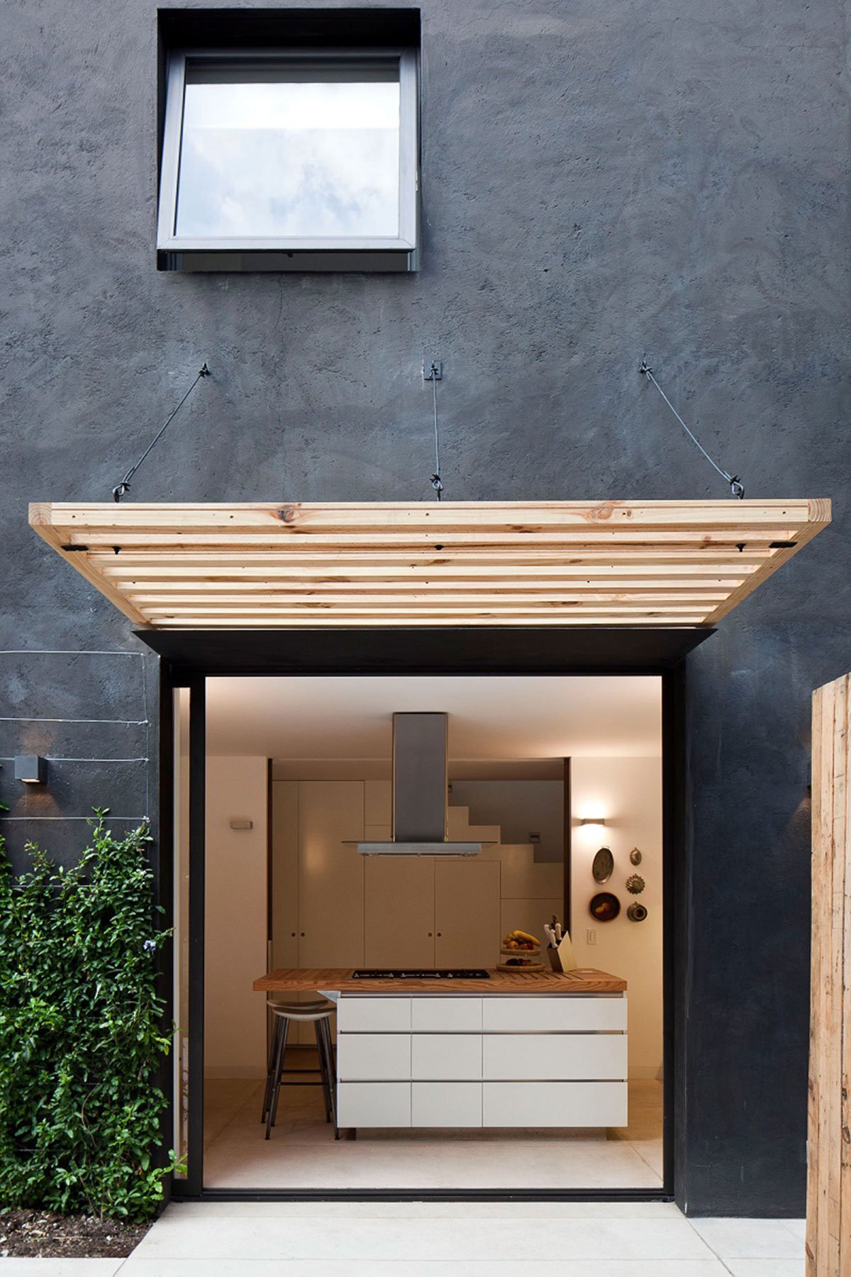 We divided the plot in two part with equal dimensions. In one half we constructed a longitudinal block of 5 x 20 meters that corresponds to the house. While the other half was conceived as negative space contained within the structure. The negative space functions as an open space or public area remaining unoccupied. The built block dialogues with its counterpart through an open façade all along one of its sides. In this way, the only enclosed elements of the house are the kitchen and the bathrooms. The counterpart of the façade is a solid wall with the height of the built area, which limits visibility of the neighbours and gives privacy to the house.