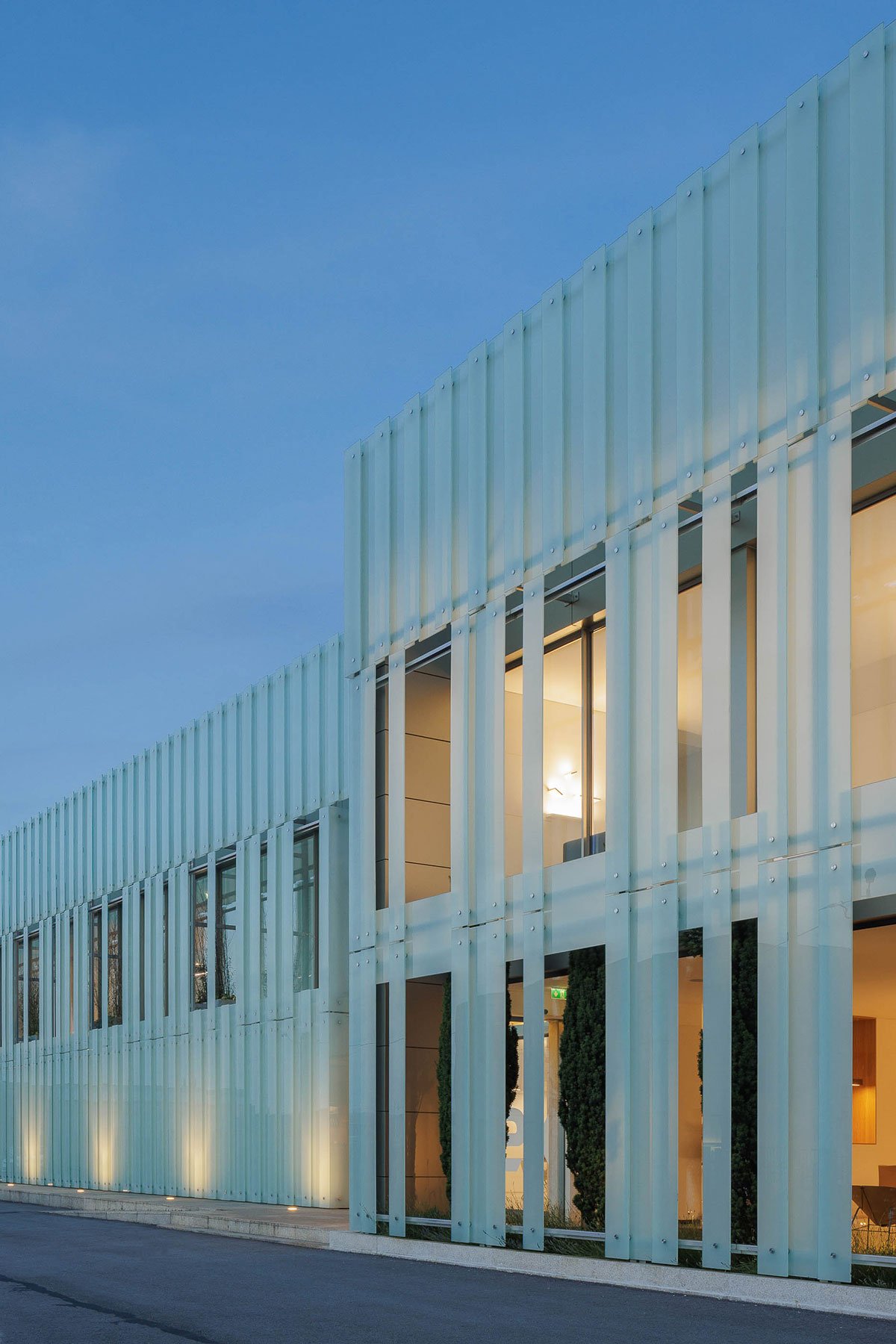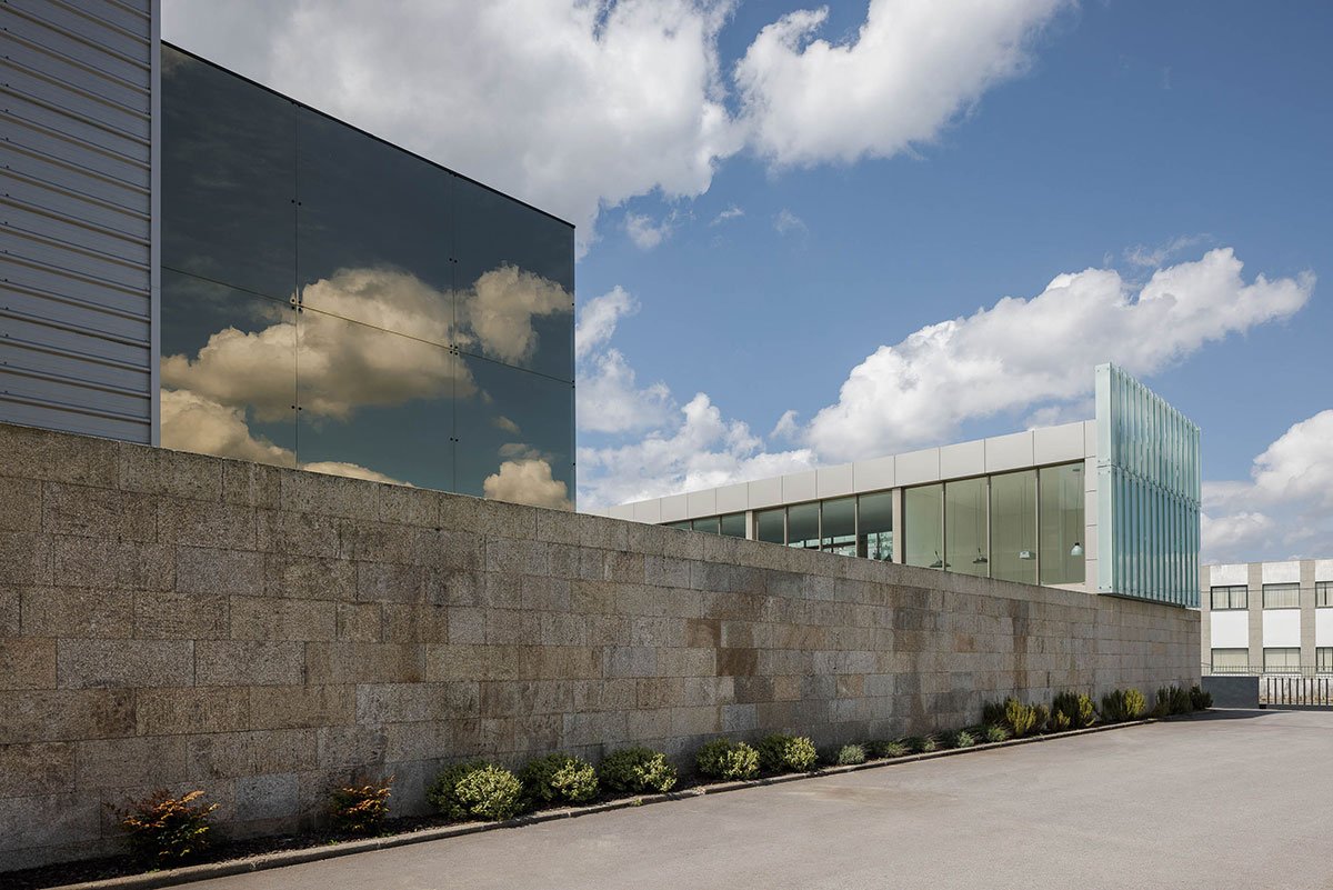 Excerpt: Requalification and Expansion of Exporlux Facilities by Espaco Objecto, Arquitetura & Design aimed to enhance both the interior and exterior of the building. Internally, the design focused on creating a more cohesive look by simplifying the materials used for coverings and finishes. Externally, the introduction of a curtain facade with vertically arranged frosted glass panels creates a unified appearance of the building.