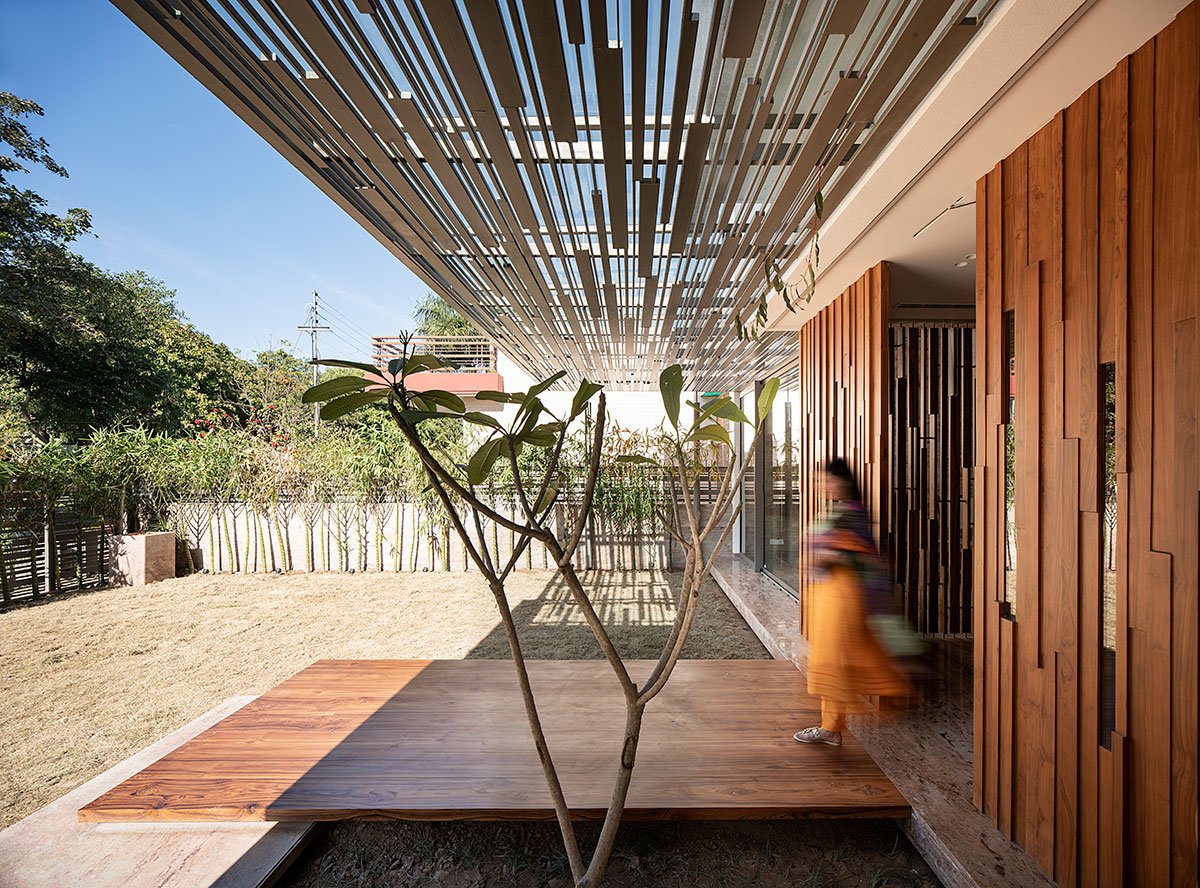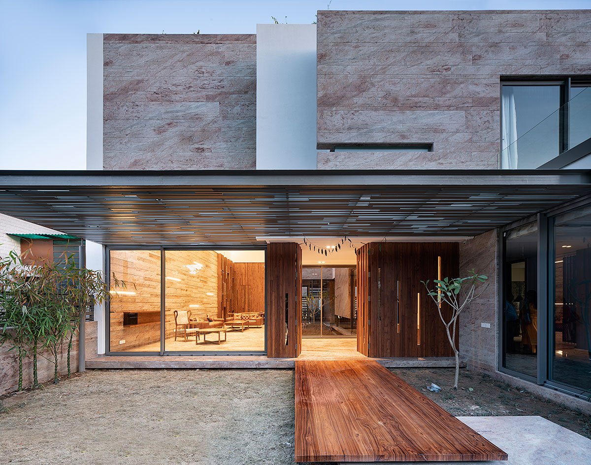 Excerpt: Residence 145, designed by Charged Voids, is a play on the fundamentals of urban residential design with an idea of connected living. Elements of nature—bright daylight through the skylights, floral fragrance, and the gentle sound of quietly flowing water- are introduced to visually and spiritually invigorate the space and its occupants. The house supports and reinforces the interpersonal lifestyles of multigenerational Indian households.
