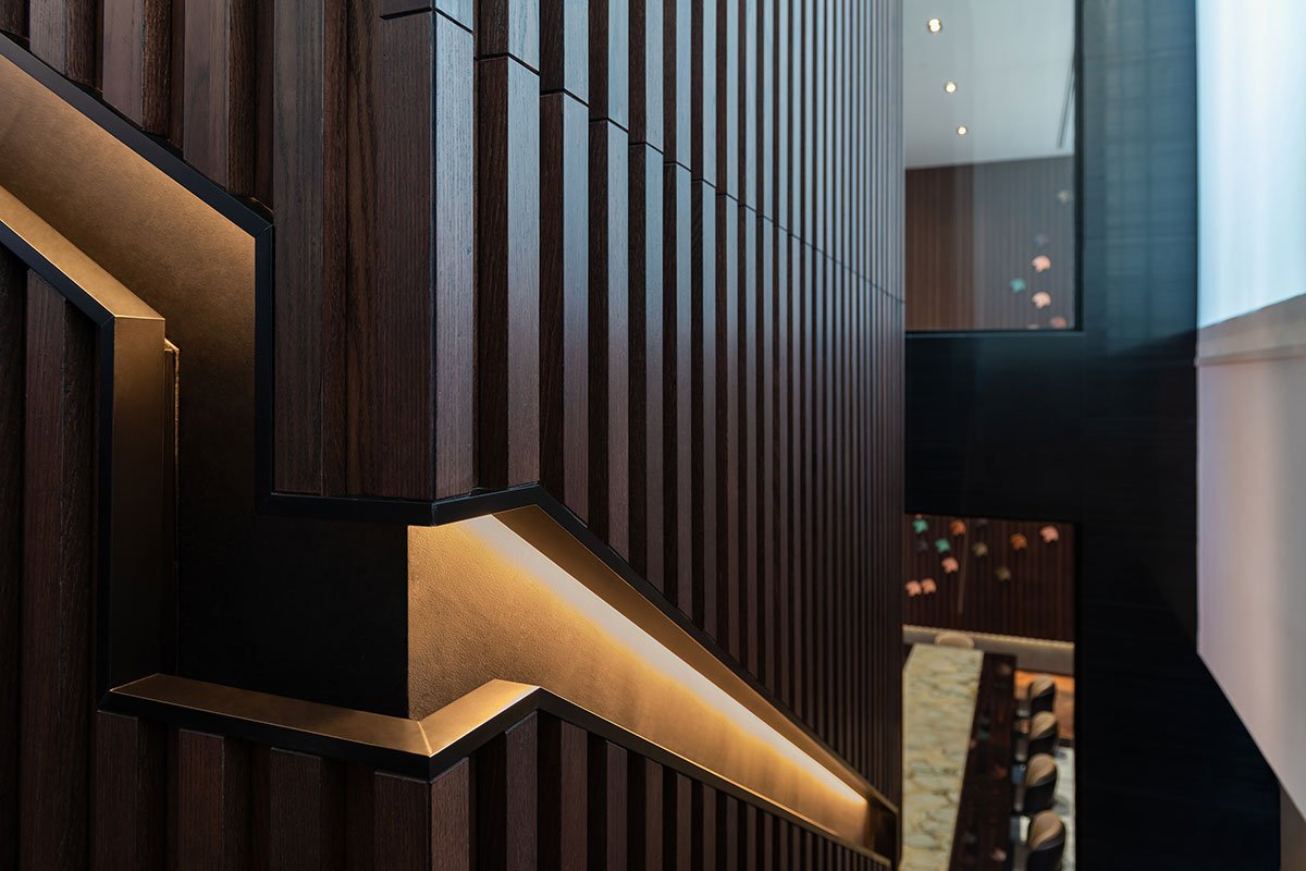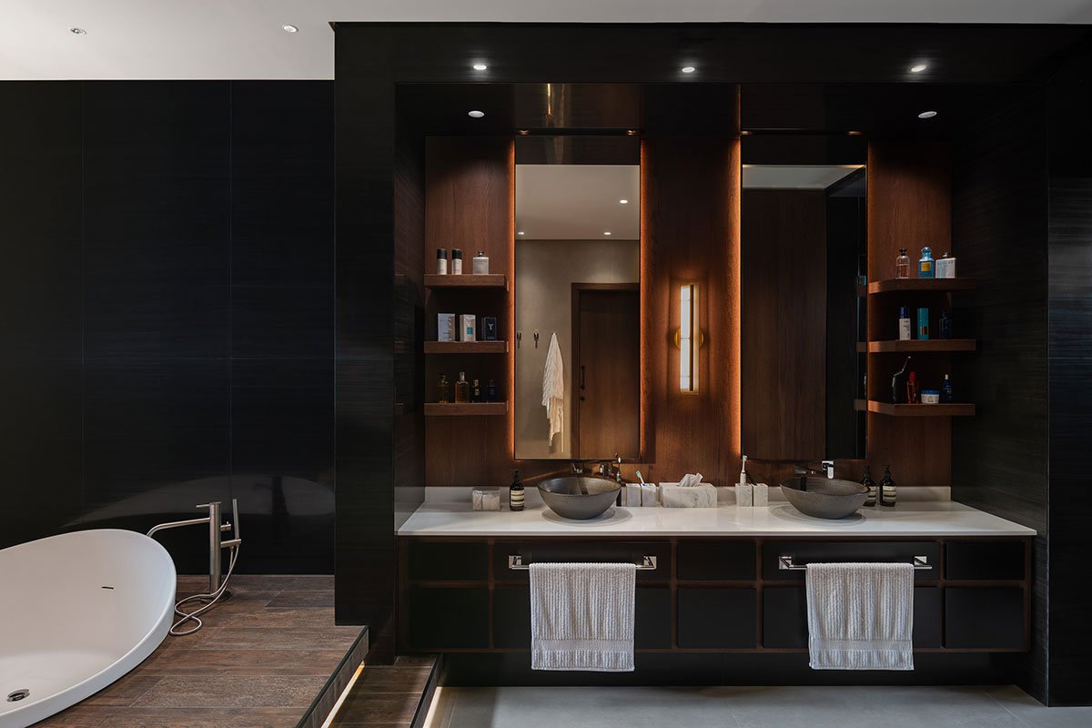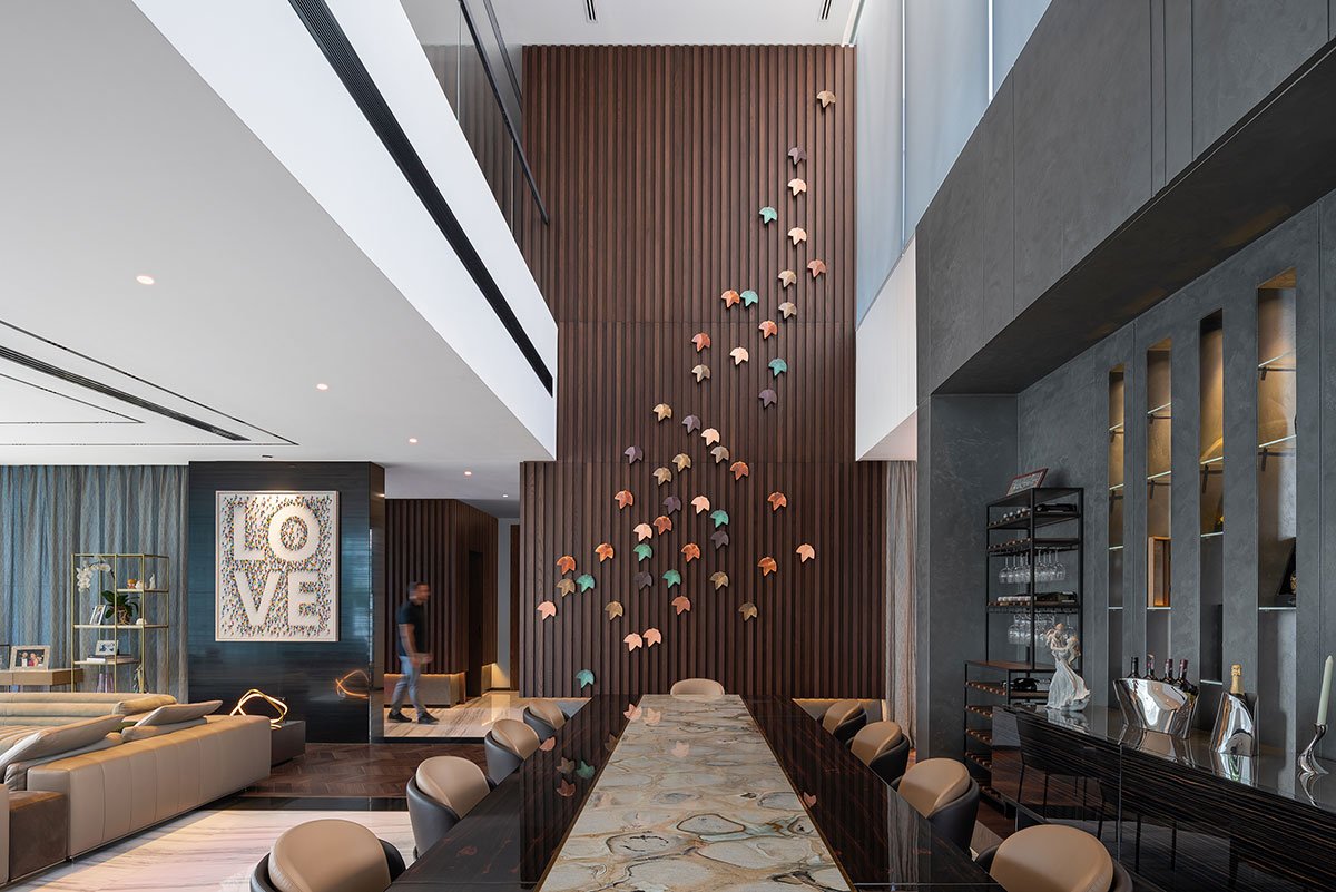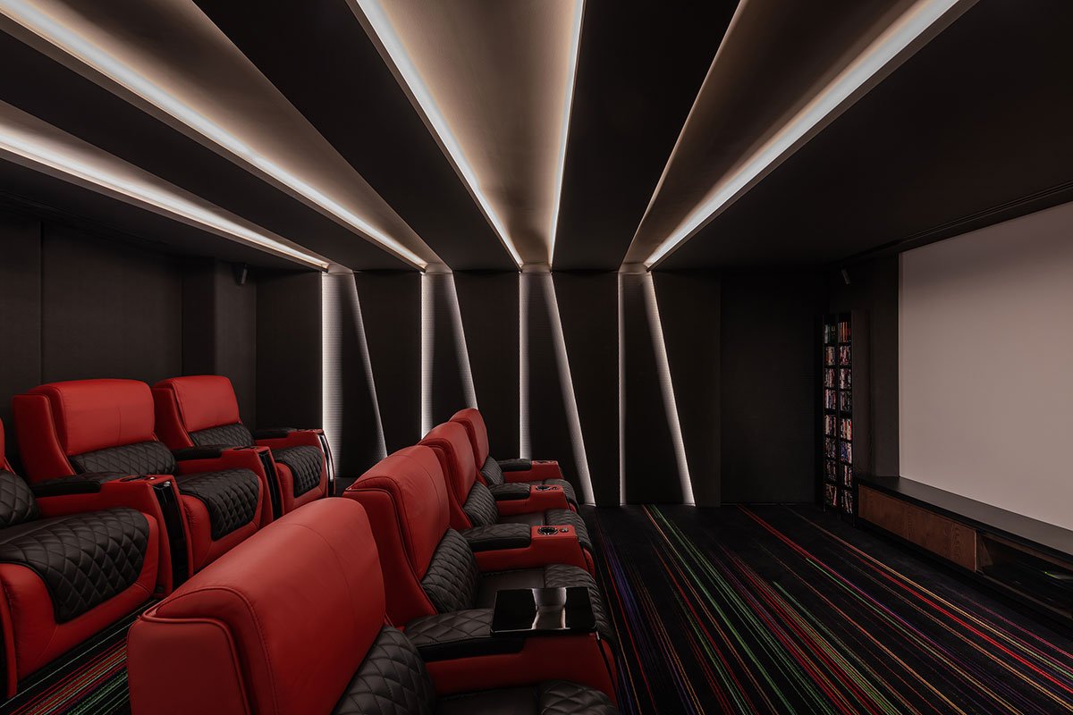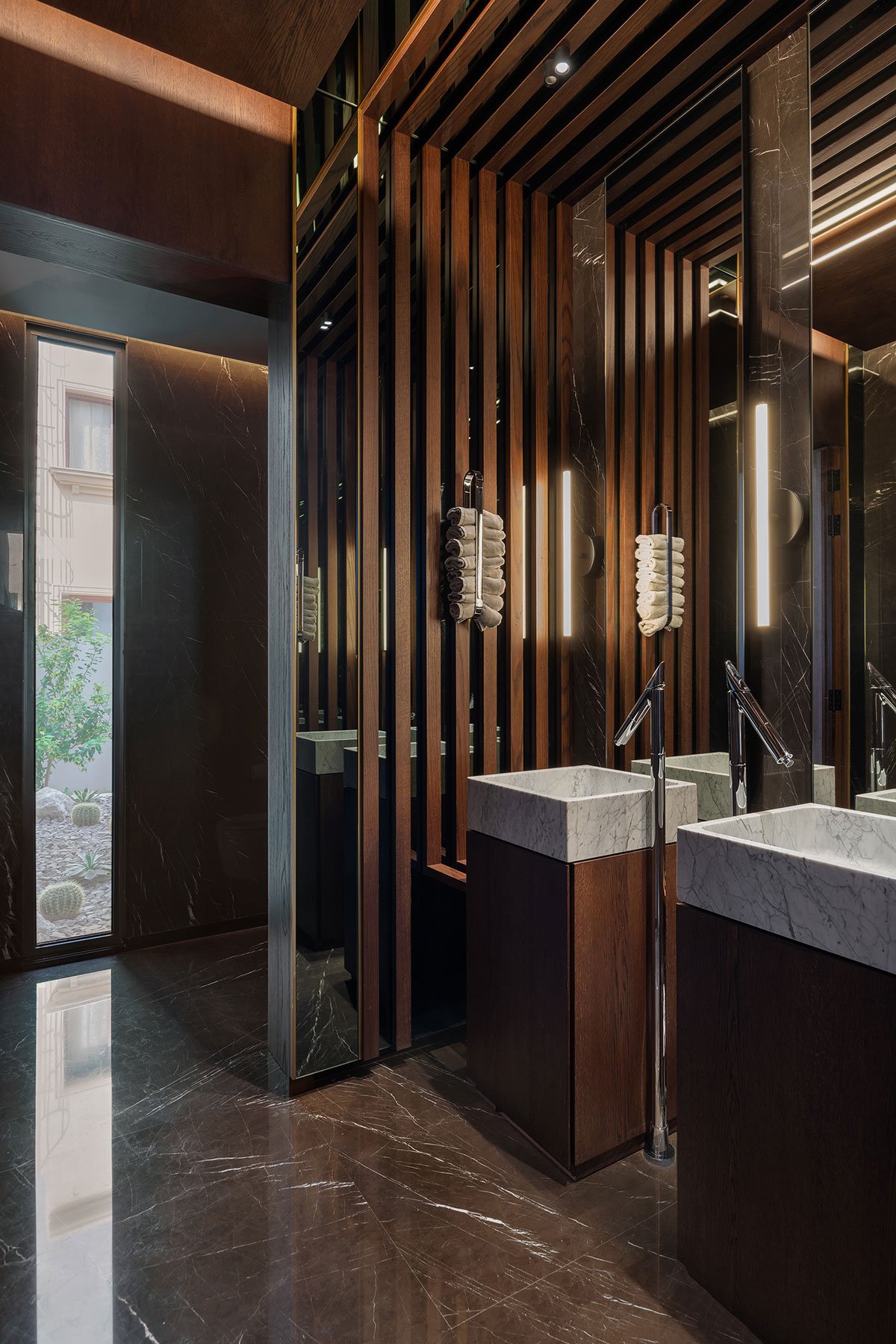 From the main entrance, a disruption of the marble slab links the ground floor to the basement. A clear change of material and disconnection and light give the basement a different feel and atmosphere. A home playground designed to suit the client’s needs and hobbies. The bar, home theater, gym and playroom are crafted and designed for leisure and entertainment.