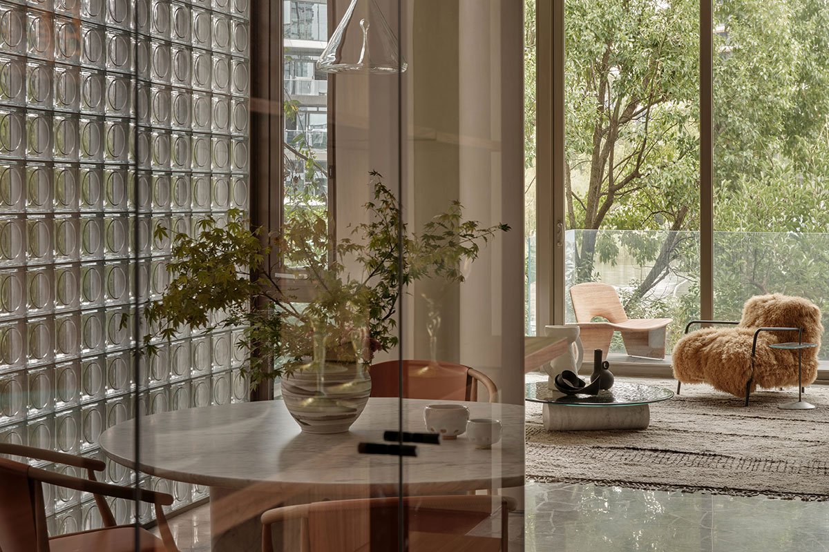 Excerpt: ‘Residence LL – A Place of Tranquility’ by Atelier About Architecture aims to preserve structural columns, reorganize the floor plan, and transform the space into a living canvas. The interior design adjusts heights and proportions based on movement flow and natural light, using transparent materials to soften light and balance privacy in narrow areas. The open layout symbolizes blurred boundaries, merging architecture with the surroundings to evoke memories.