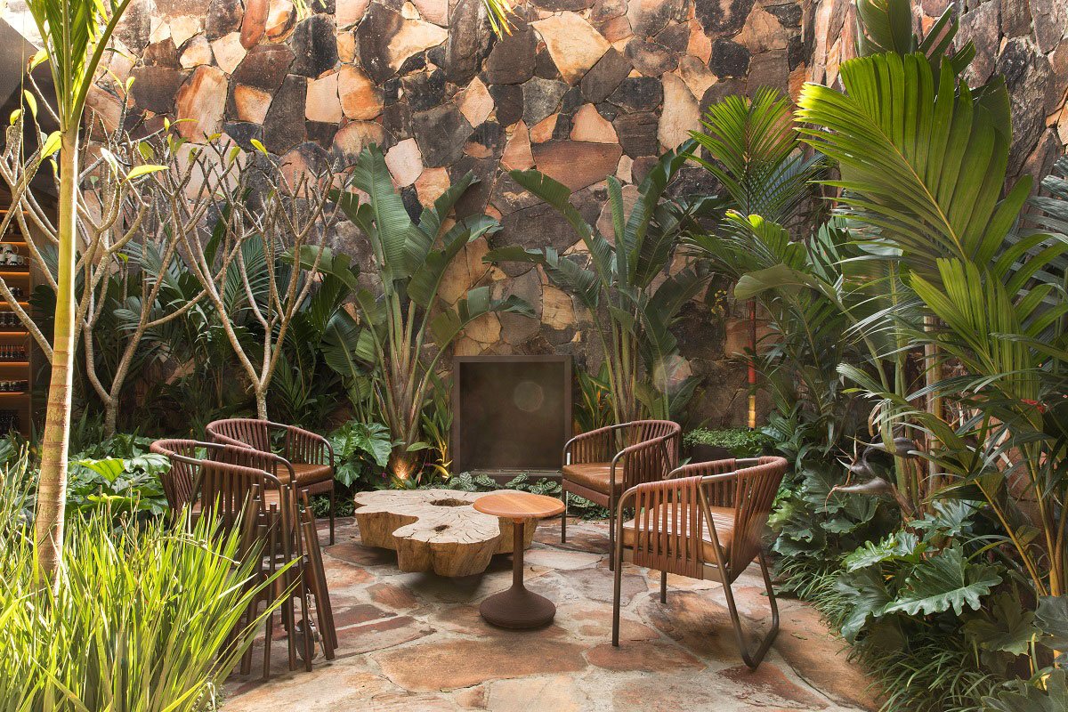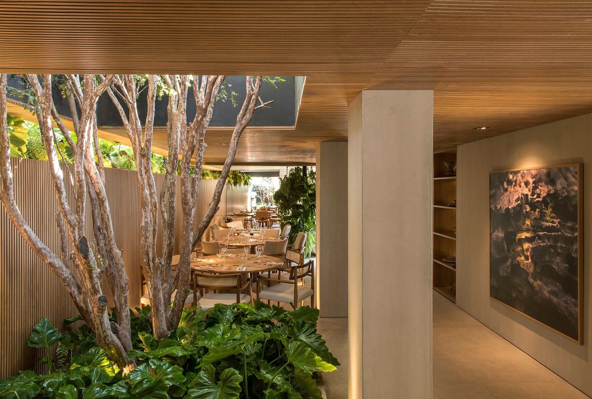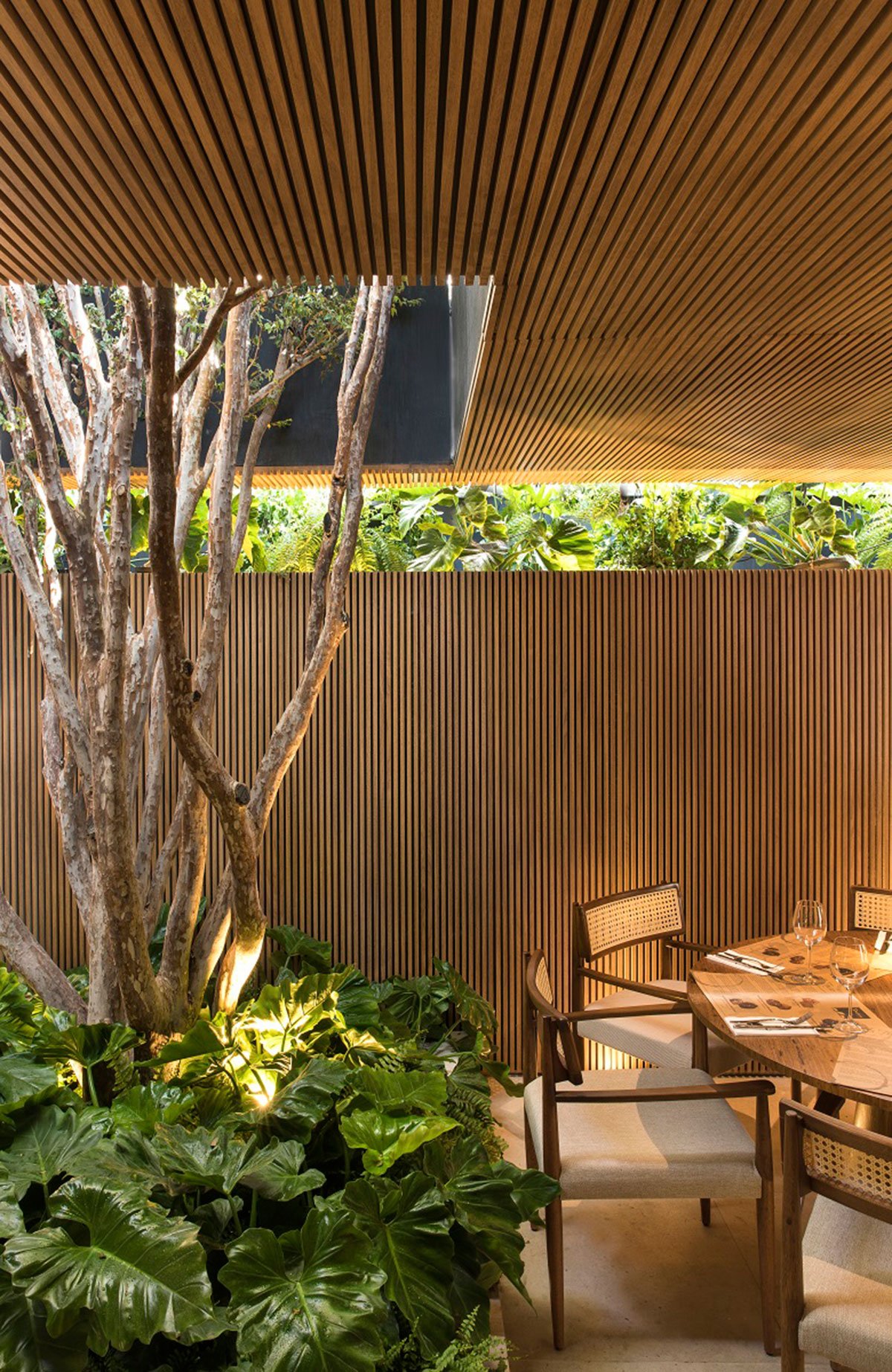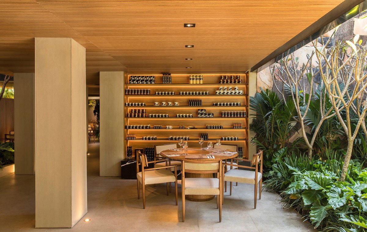 The use of green in space is something we always use, to give life to the environment, it is necessary. Based on this principle, we design the restaurant integrating the interior with the exterior, through large openings, facilitating the use of lighting and natural ventilation. The formal purity with straight lines and few volumes, planes that lengthen and at the same time unite the environments, natural materials like wood, concrete and stone are elements that characterize the project.