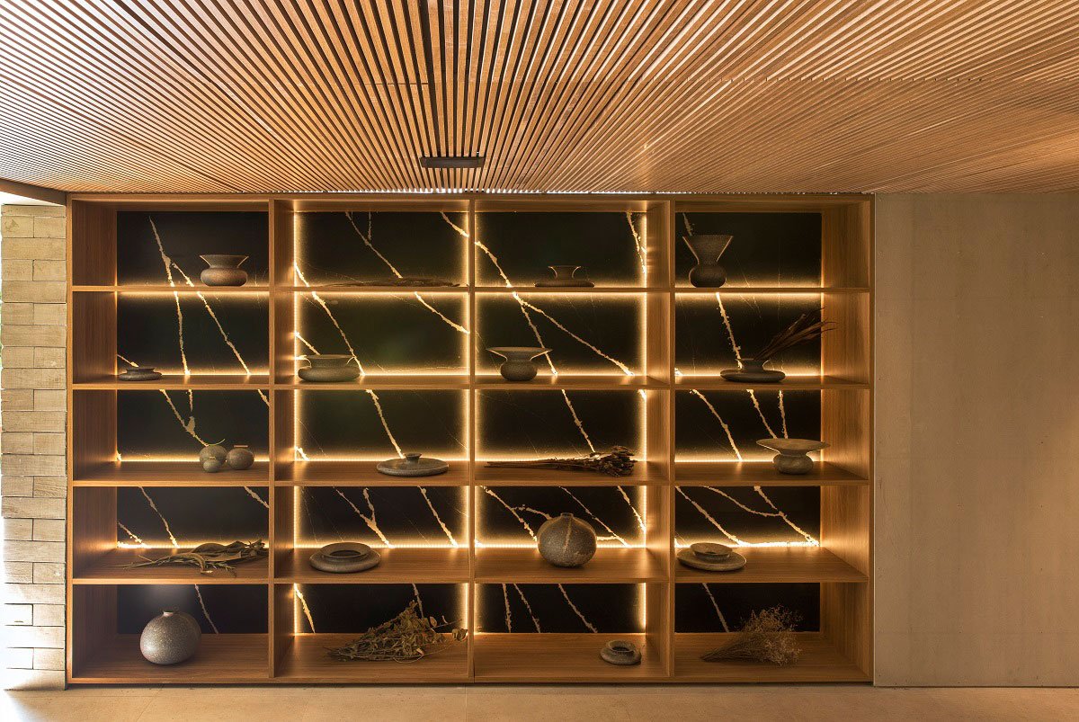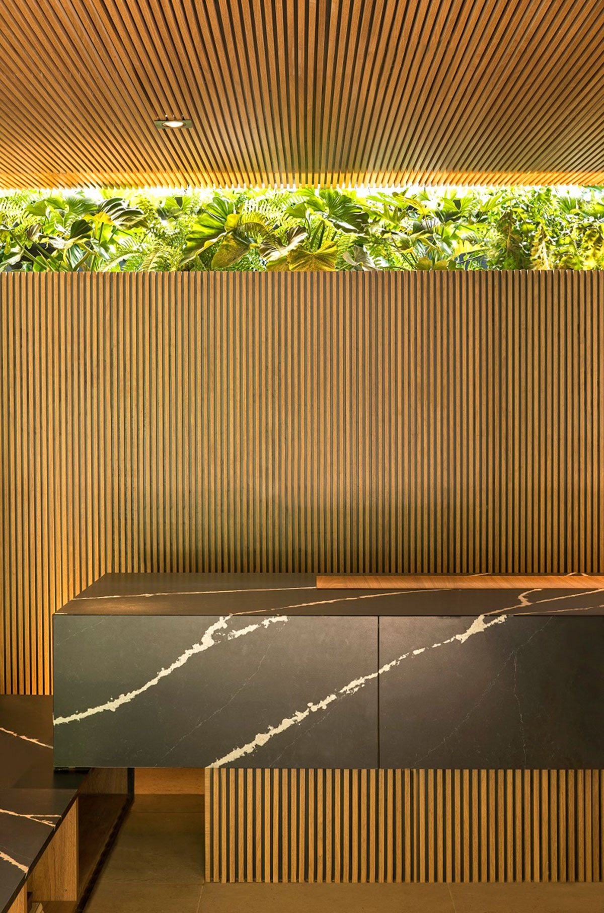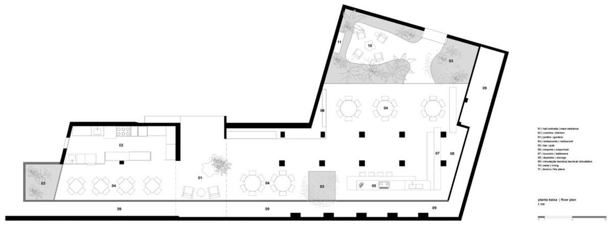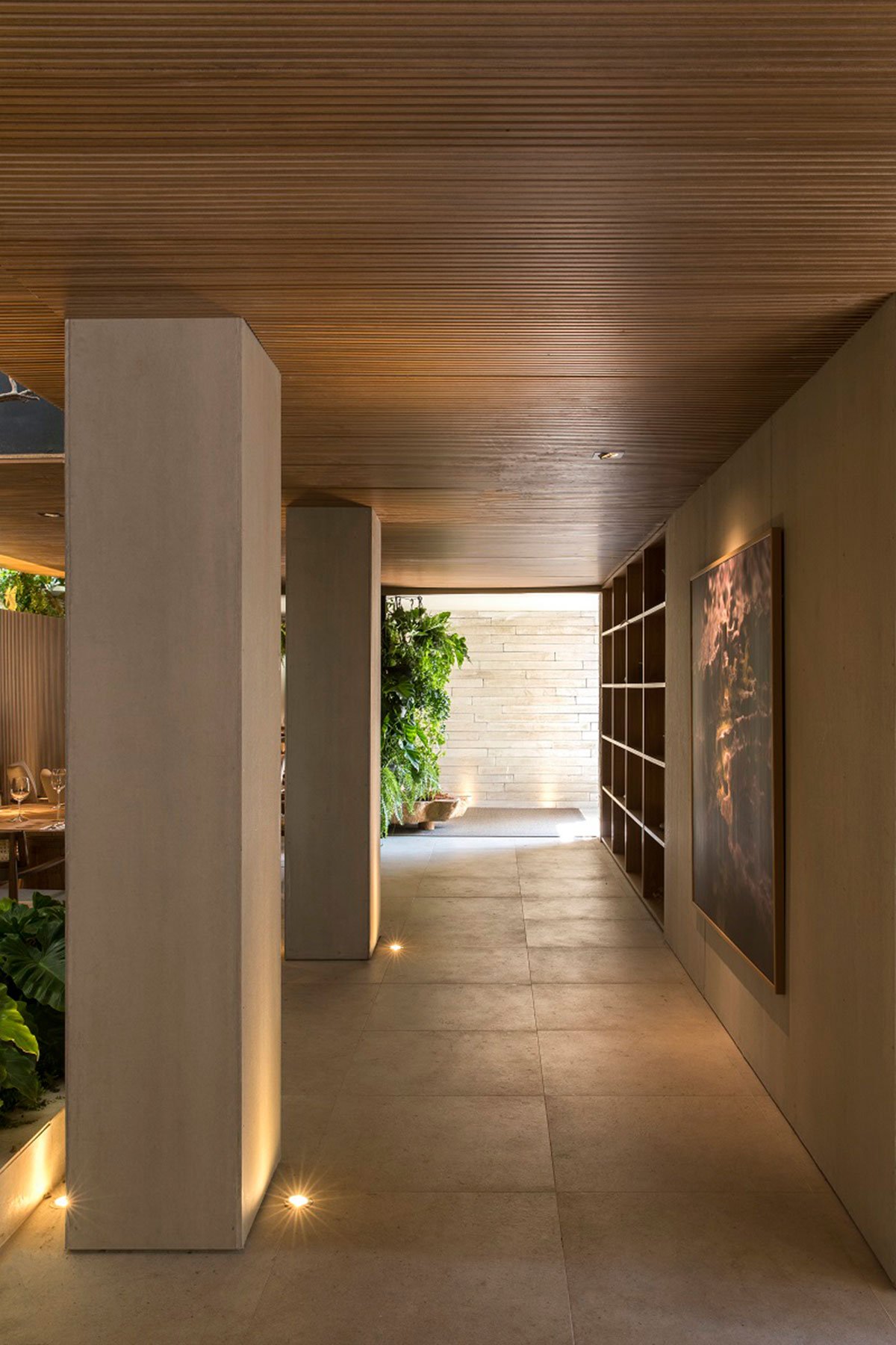 The use of green in space is something we always use, to give life to the environment, it is necessary. Based on this principle, we design the restaurant integrating the interior with the exterior, through large openings, facilitating the use of lighting and natural ventilation. The formal purity with straight lines and few volumes, planes that lengthen and at the same time unite the environments, natural materials like wood, concrete and stone are elements that characterize the project.