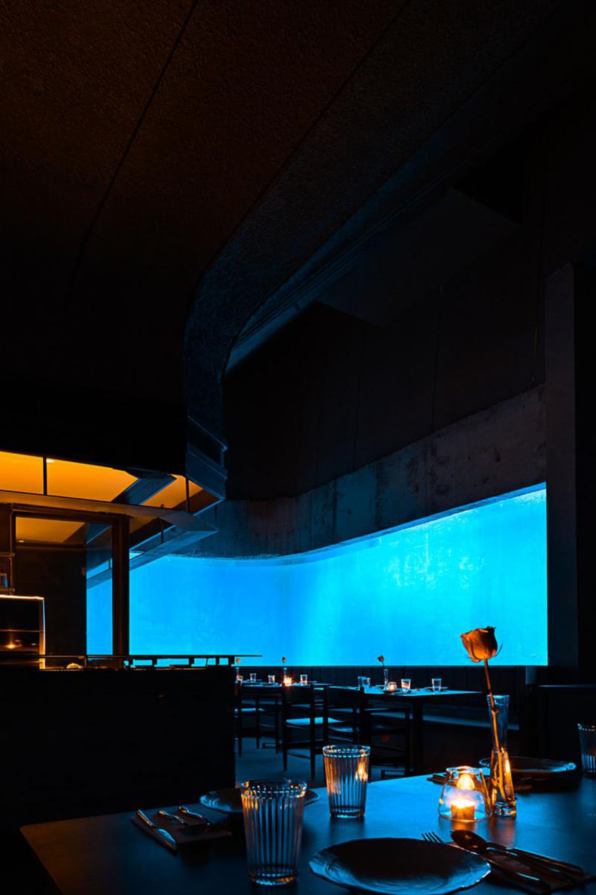 The design team wanted to create a dining environment that naturally triggers emotional reactions in this underground space. Combining visual elements, local context, and architectural space brings a unique experience. This is an imagined space where the sea flows and a place that reflects daily life.