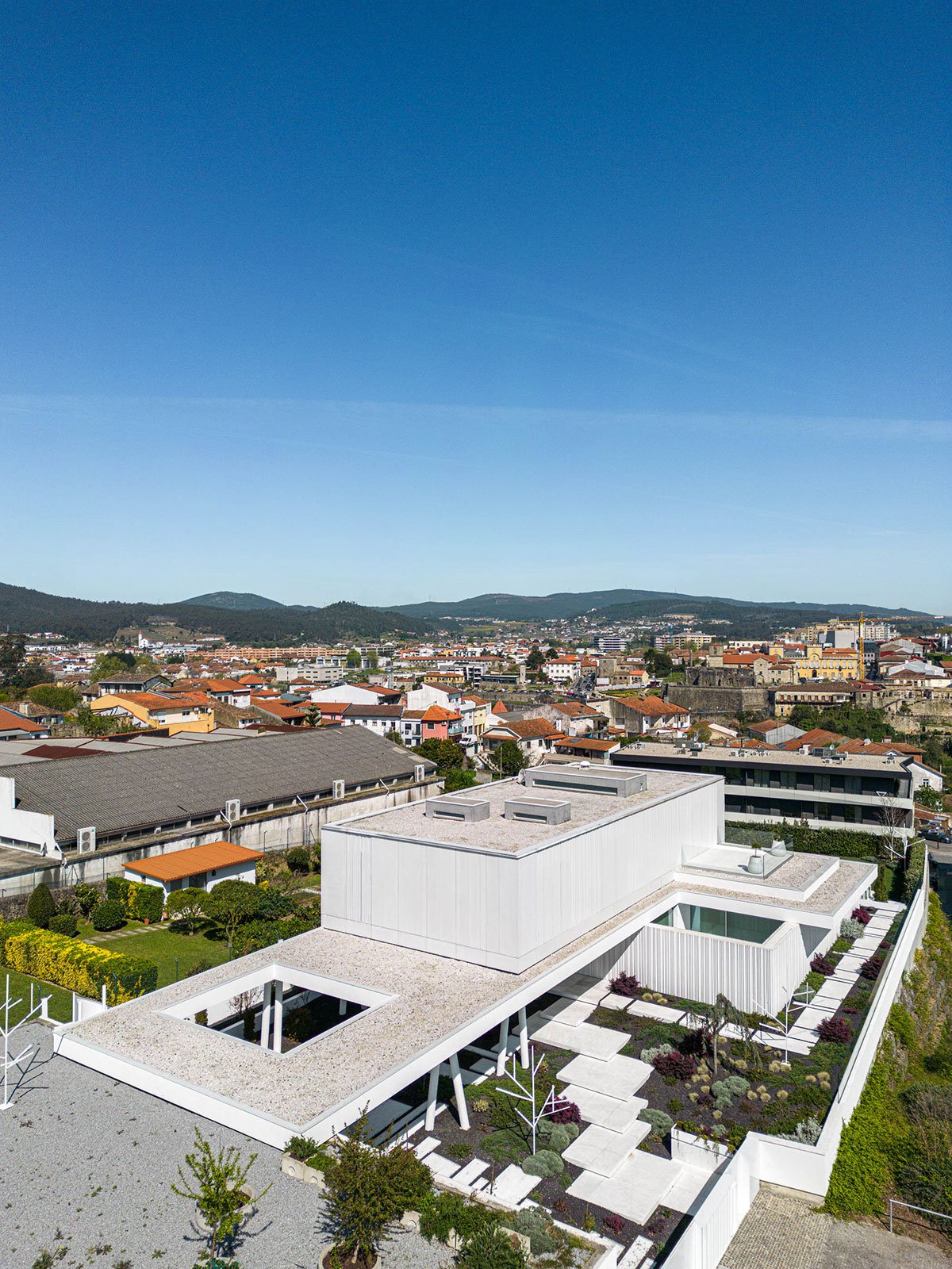 [Text as submitted by architect] The residence is located on the south bank of the River Cávado in Barcelinhos, offering a wide green landscape immortalized by the Palace of the Dukes of Bragança and the Medieval Tower.