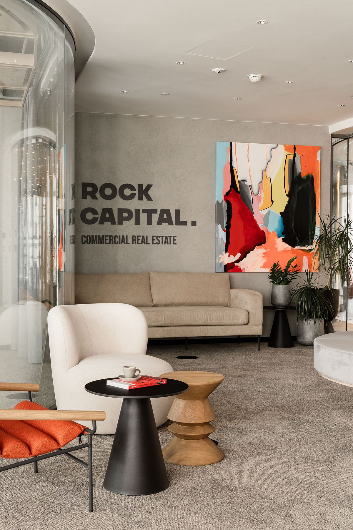 An office that inspires: Rock Capital’s new headquarters is more than just a place to work. It’s a carefully composed blend of function, aesthetics, and emotion—a place that fosters focus, collaboration, and inspiration. BIT CREATIVE has created an interior that not only meets the user’s needs but also subtly tells a story about their values—investment in quality, art, and architecture.