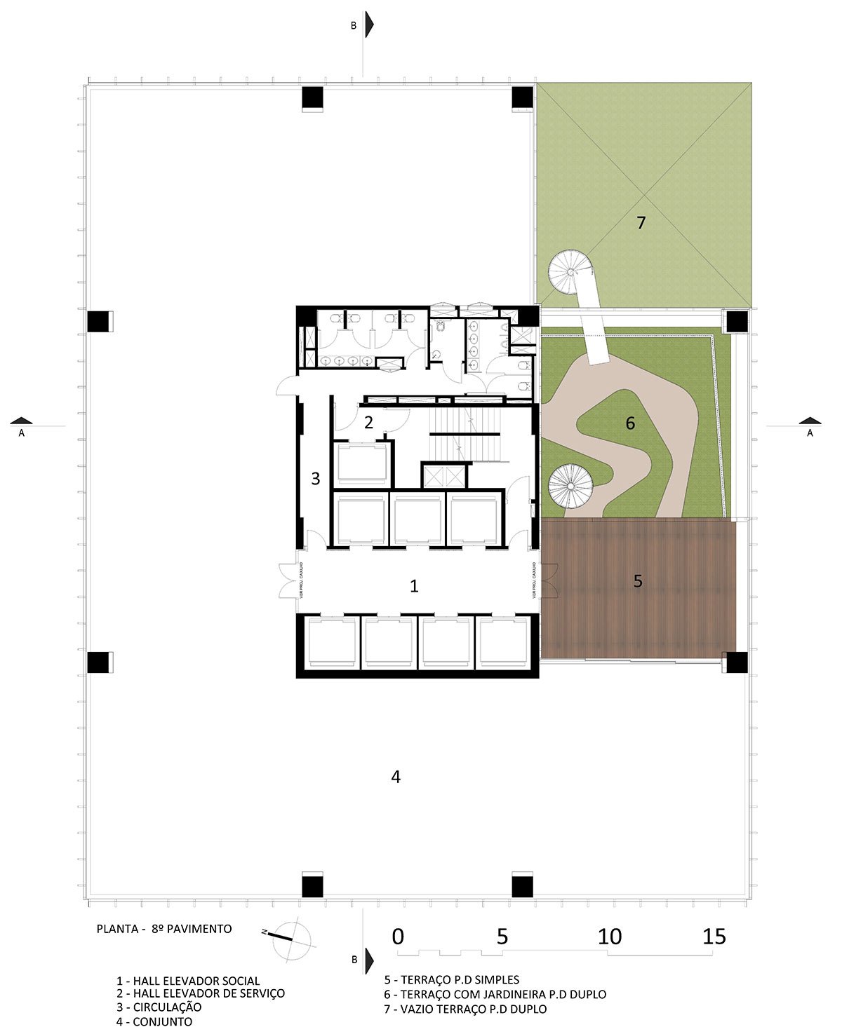 Nestled on a site that spans half a city block and accessible from three distinct streets – Rua Professor Atílio Inocenti, Av. Horácio Lafer, and Av. Faria Lima – this project emerges as a symbol of a groundbreaking concept for corporate ventures. The ground floor of the building was conceived as an open space, without walls or railings, with active façades with shops and restaurants, thus promoting interaction and connection with the urban environment. With 16 floors and 1200 m2 of area per floor, the single tower features 4.68 m from floor to floor, providing a large and ventilated space for its users.