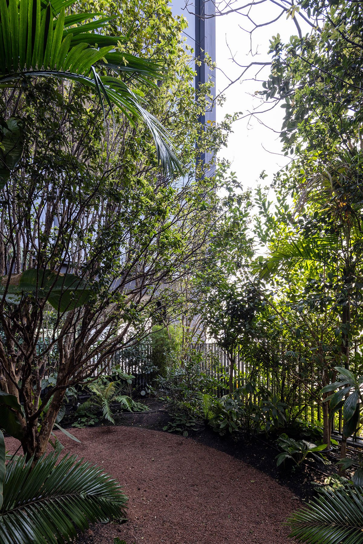 To enable such a guideline in the architectural project, the development benefits from the Terraces Law, allocating 5% of the land’s area to hanging gardens. These spaces were designed with the aim of promoting the well-being and quality of life of its occupants, even offering the opportunity to walk barefoot in the middle of a dense forest, giving continuity to the existing thicket in the lots surrounding the plot.
