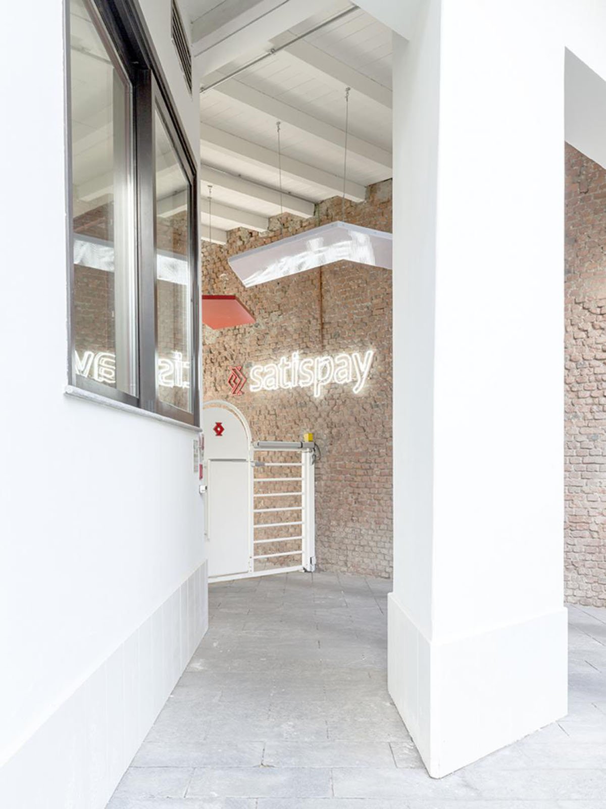 The Lobby/Entrance is common for all people working in the building. It is a place where everybody passes to reach their position. We wanted to have this centrality, being a very articulated complex. It can be said that all the conformation is designed towards obtaining a “village”, the CASA SATISPAY.