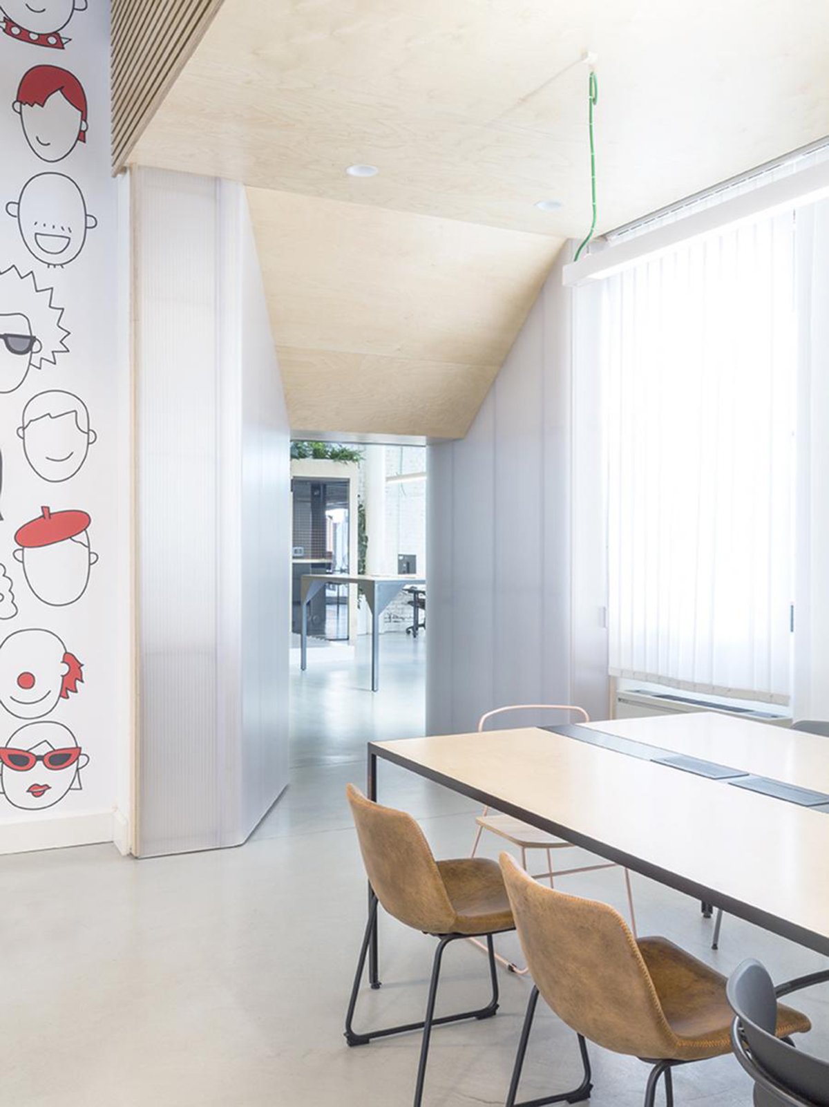A social area is a special place where everybody meets during breaks. It has been planned with maximum flexibility to become a place for general meetings and updates. In the marketing section, you can find the “phone boots”. They are any other phone cabins where people can stand and talk without disturbing colleagues.