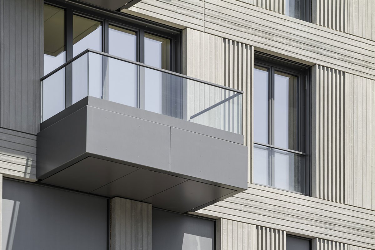 Window flaps and blind window fields are additionally emphasized and loosened up by recesses, corrugations or colour accents. The vivid façade image is intensified with different designs of balconies. Glass balustrades are used to match concrete surfaces, individual metal railings are provided for masonry facades.