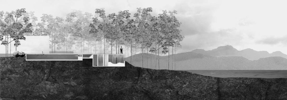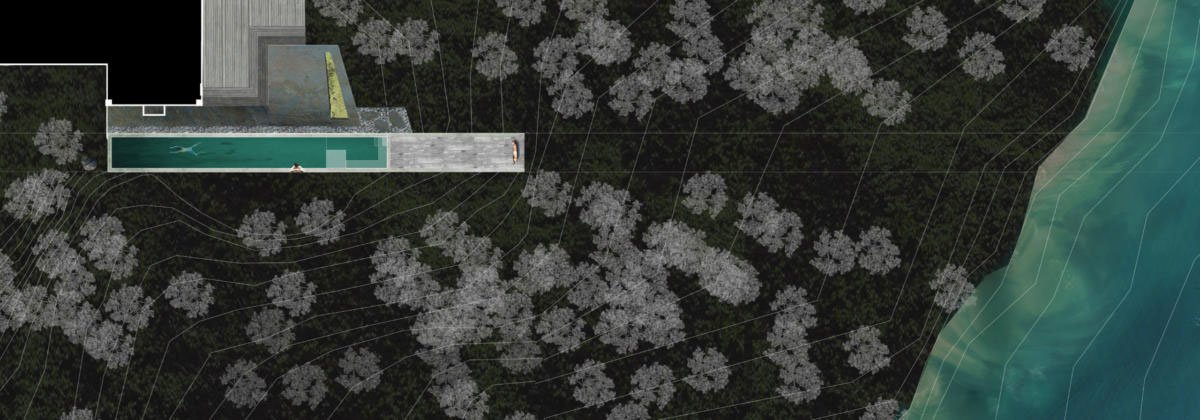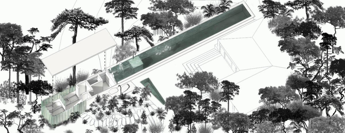 Excerpt: Sculptor’s pool, designed by architectural firm Connatural, talks about immersion in the water but also in the landscape. A long, thin line that continues to form a terrace it speaks to us of movement, it seeks to get lost in the native forest. Losing yourself is also immersion. By pretending that the pool is one with the landscape and is inscribed in the relief, the idea is pursued that in the depth of the pool a proper geography is also generated, which accommodates the various particular human positions of aquatic activity.