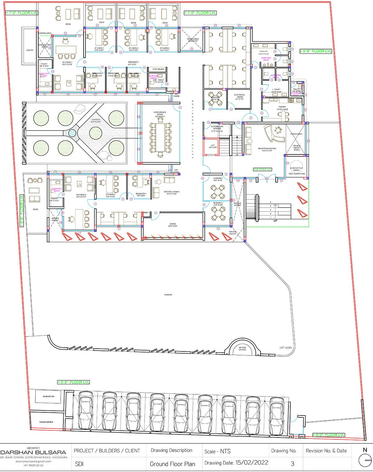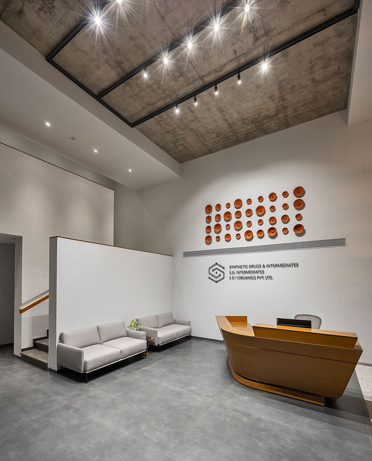 Excerpt: SDI, a commercial project by Darshan Bulsara Architects, harmoniously blends modern design and warmth to create an office that defies the typical corporate monotony. The design features warm, open spaces seamlessly connected through experience corridors adorned with paintings and sculptures. With a central courtyard, the design blends softscape elements with functional work areas, connecting employees to nature.