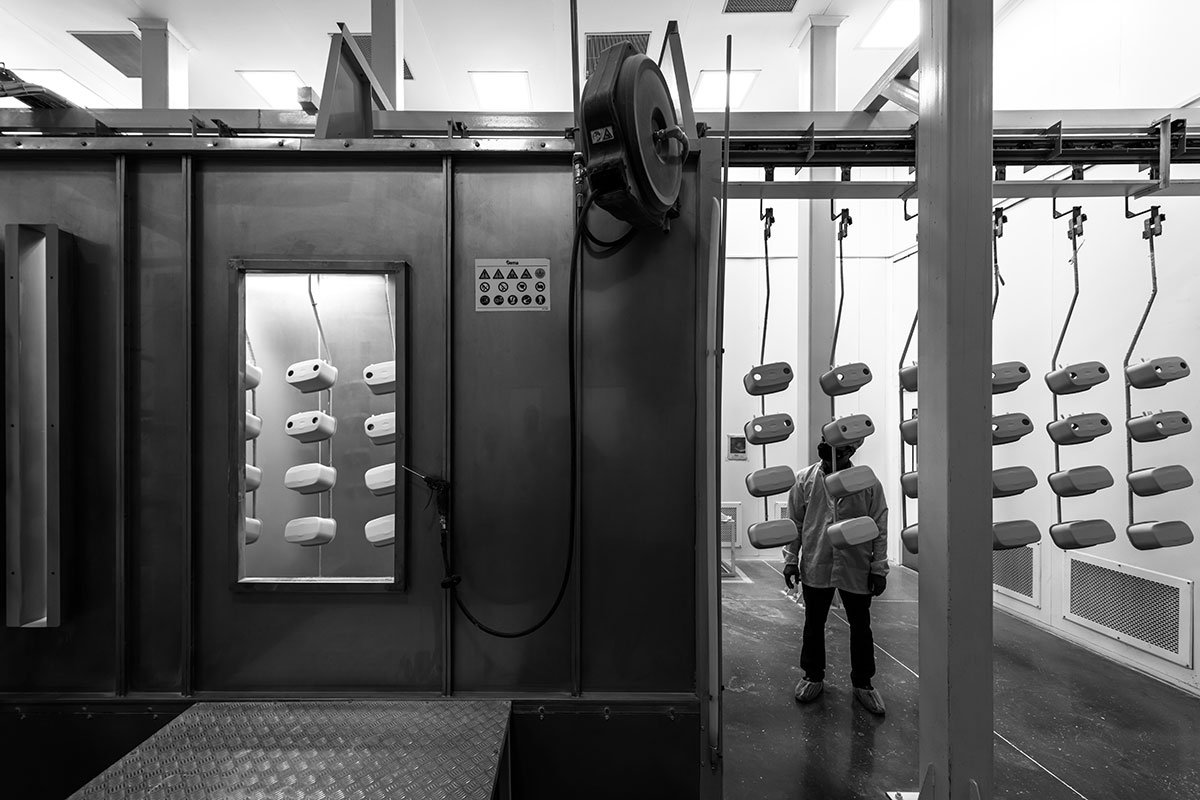 The main manufacturing wings consist of large open plan spaces, enabling additional work lines as well as a high degree of flexibility to meet the ever-changing needs of the workforce. The utilitarian buildings have a clear design language. A white colour palette was chosen for the structure and surface finishes, providing a lighter ambience, while grey stone cladding roots the scheme in its surroundings.