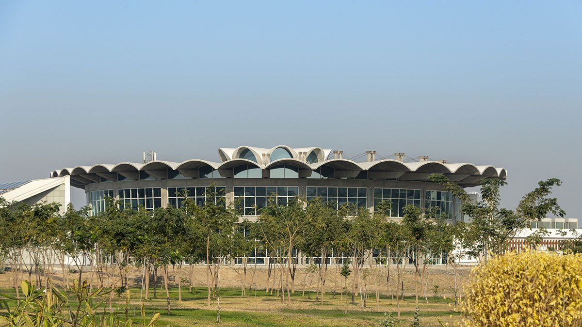 [Text as submitted by architect] Secure Sanand is a purpose-built industrial facility for Indian multi-national electronics manufacturer Secure Meters in Sanand, a city in the Indian state of Gujarat. The scheme has been designed to create an uplifting work environment and promote staff wellbeing while reducing energy.
